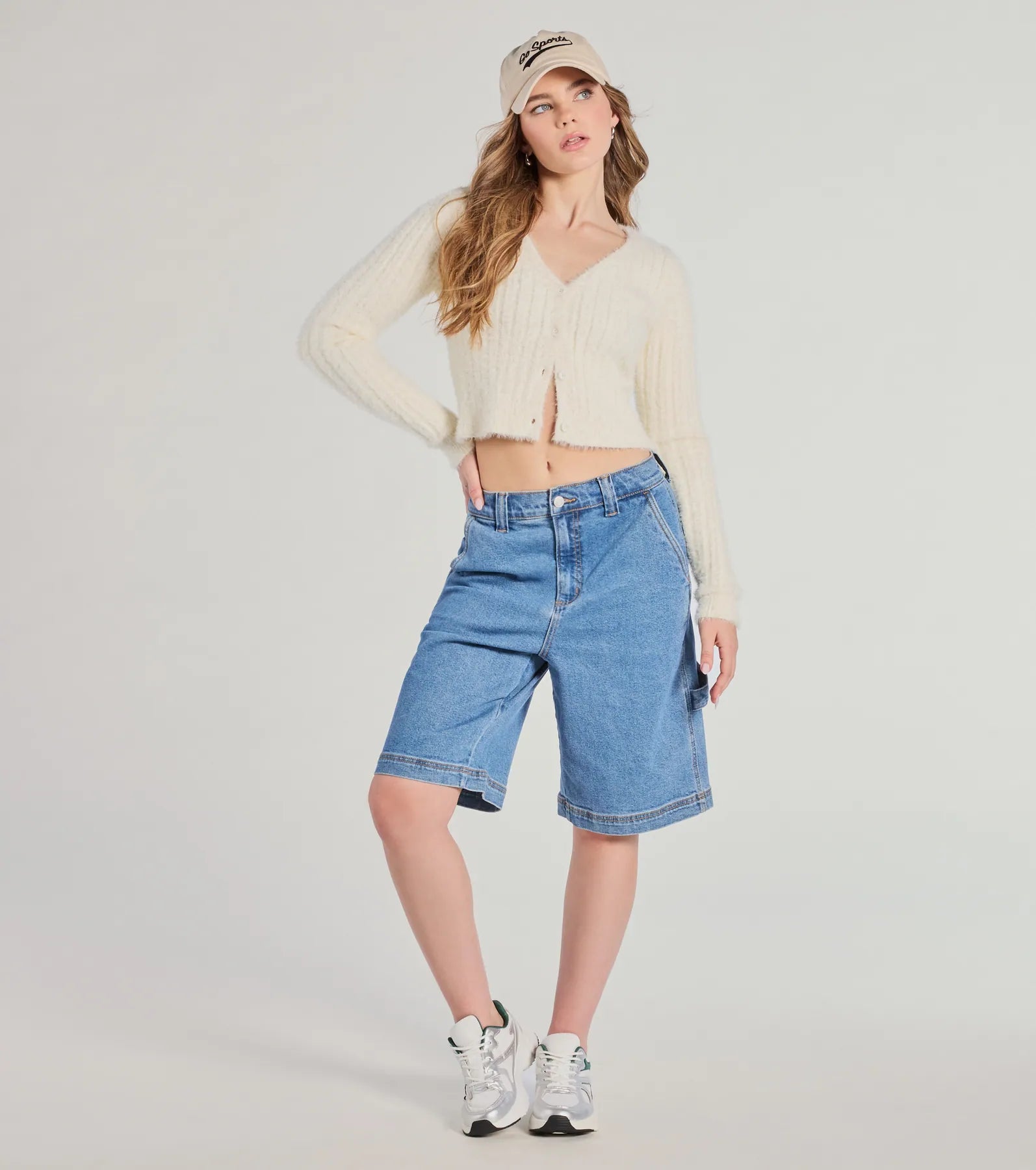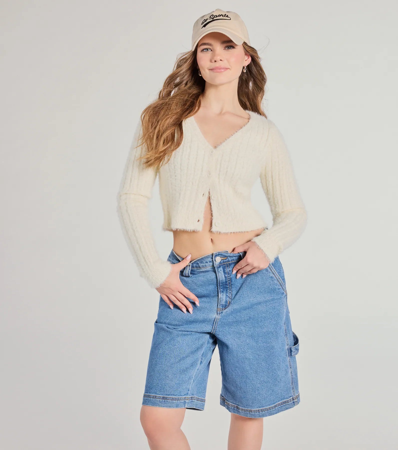Get cozy in this eyelash knit button-down cardigan sweater. With a V-neck, long sleeves, and fitted cropped hem, it's your go-to for effortless style and comfort.