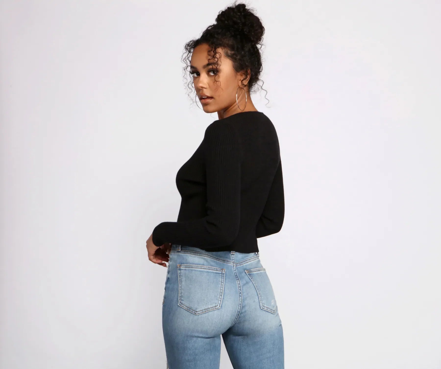 Layer up your look with a basic cardigan that makes a stylish statement. The cardigan features an open front with a tie-front, long sleeves, and a cropped hem. The cardigan is composed of a ribbed knit fabric that offers a relaxed fit with a moderate stretch. Complete the look with a bralette and skinny jeans.