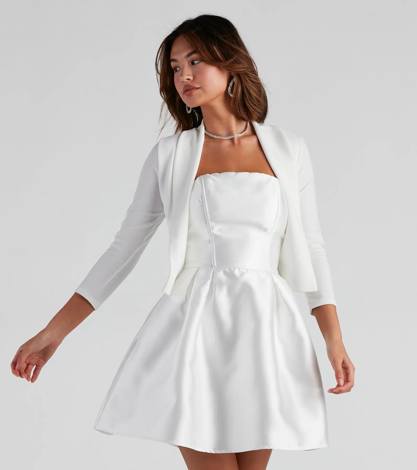 Elevate your look to a new level of chic with this cropped blazer. It features a lapel collar neckline, three-quarter-length fitted sleeves, and a cropped and fitted hem. Layer this crepe blazer over a bodysuit and pair it with a high-rise pencil skirt for the perf workwear attire.