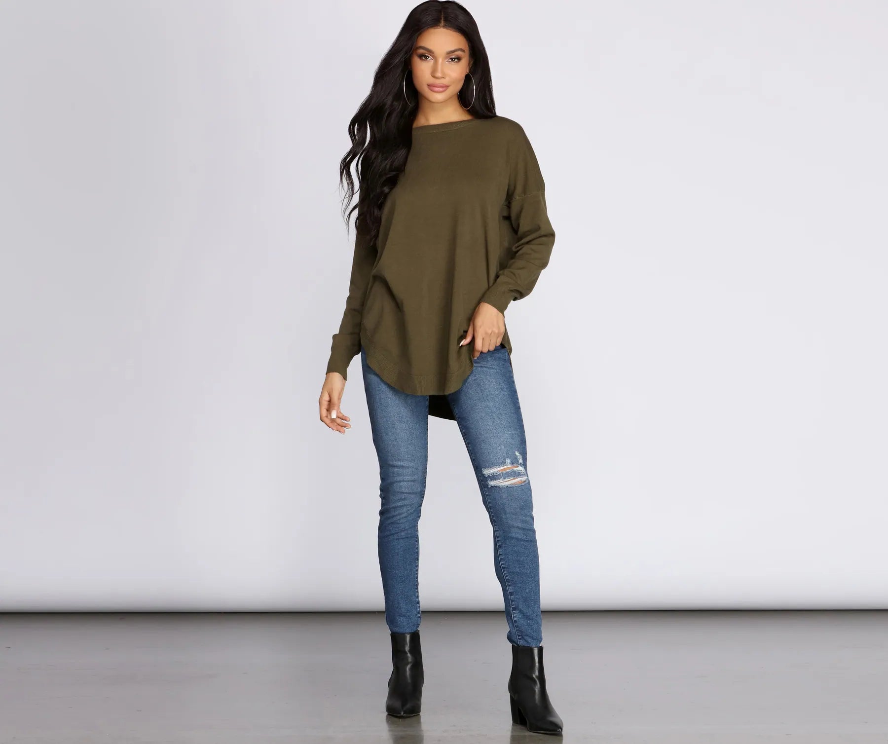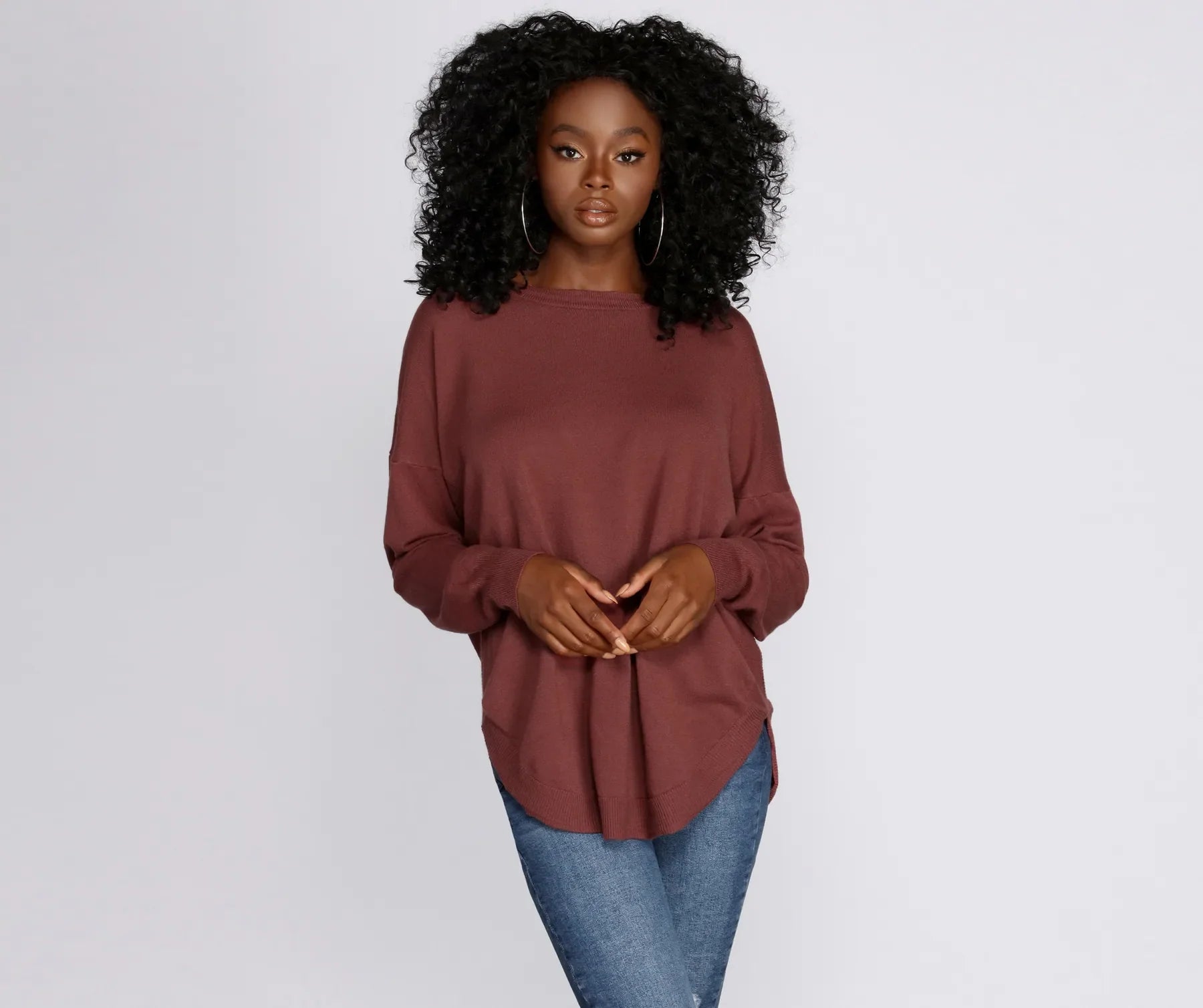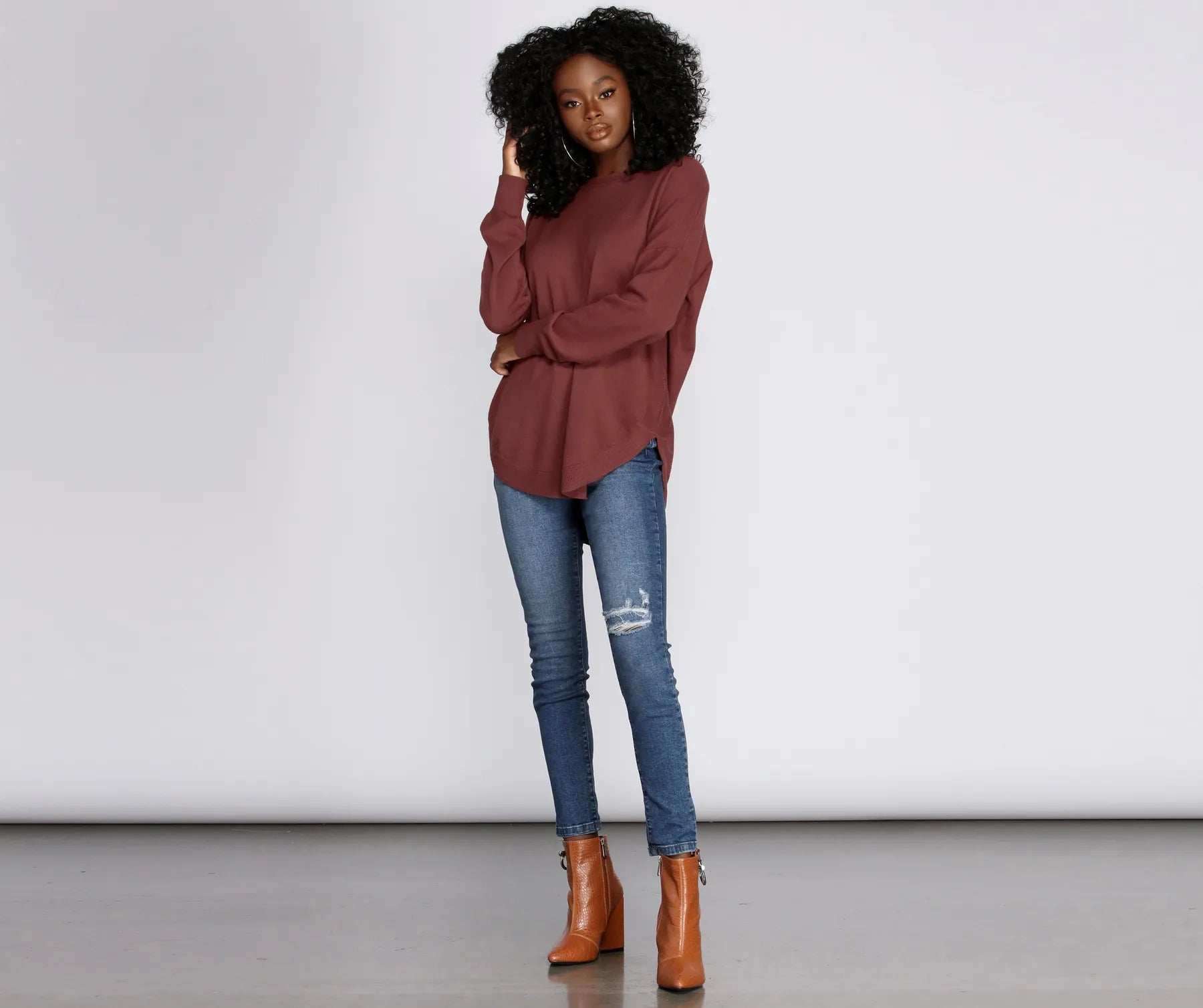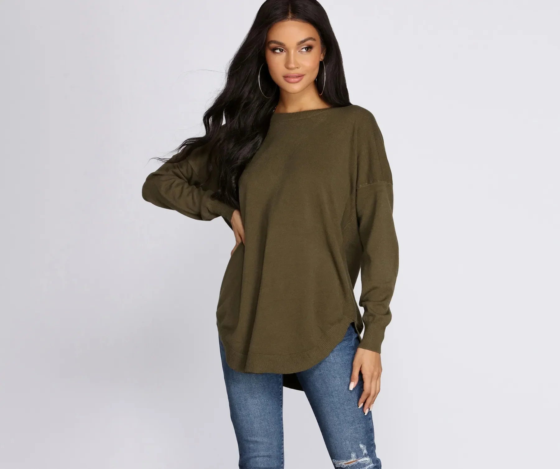 Fall back on this cute basic to layer with your fall staples this season! It features a ribbed crew neck, long sleeves, lattice straps to accent the back and a rounded hem. Tunic is composed of a soft to the touch sweater knit fabric that offers a relaxed fit with plenty of stretch.