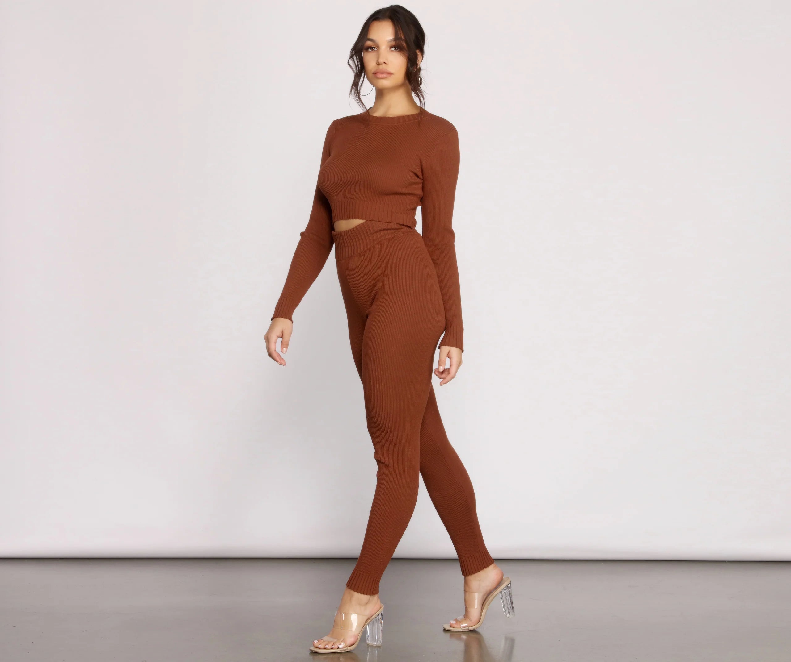 Cuddle up for a movie marathon in this cozy crop top! It features a crew neckline, long fitted sleeves, a cropped, form-hugging fit, and ribbed hems. Pair this top with some fuzzy faux fur slippers for the perfect loungewear look.