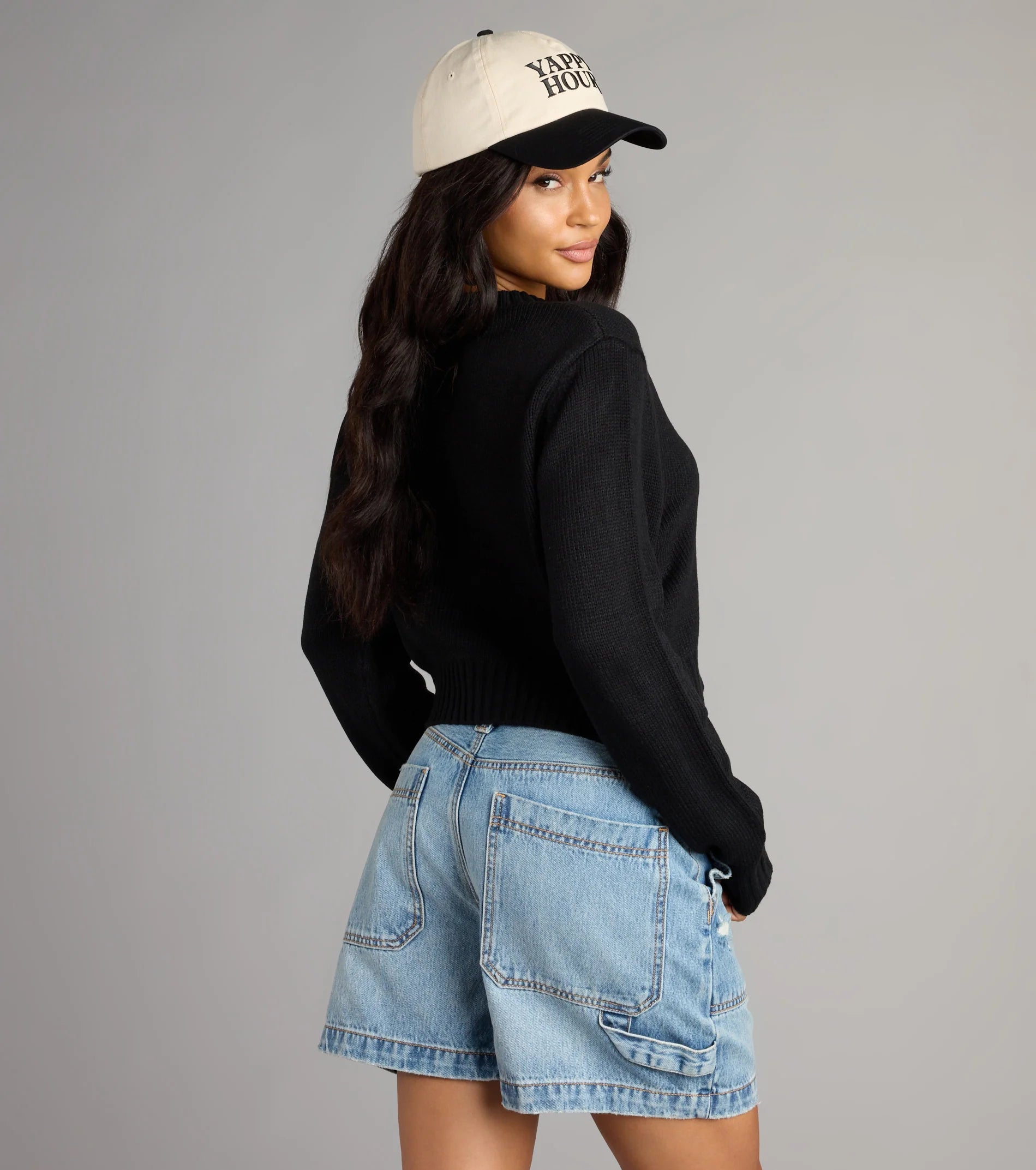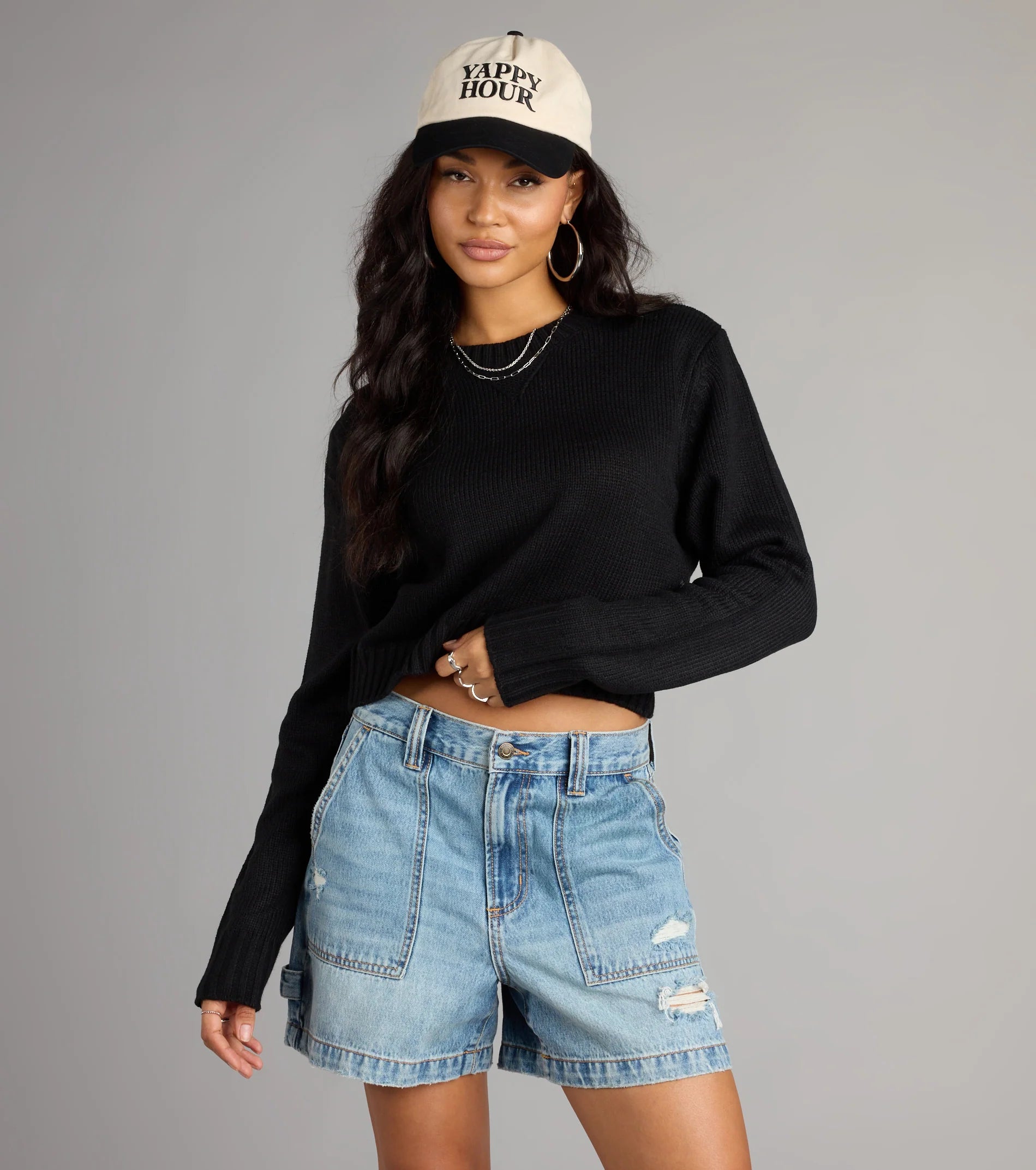 Sweater weather, but make it cute. This cropped knit sweater is your go-to for layered fall looks—perfect for classes, coffee dates, or strolls through the farmer’s market.