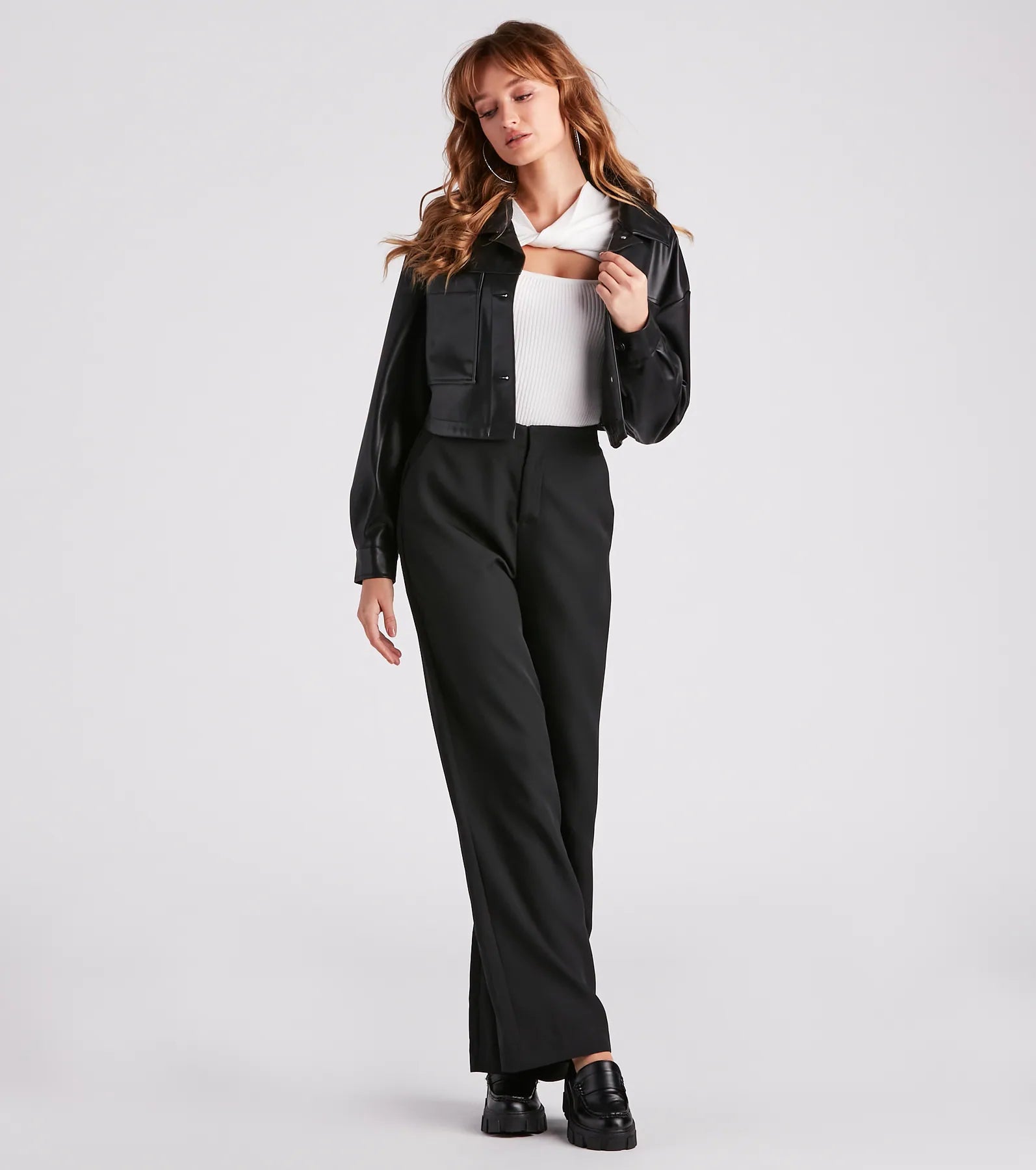 Showcase an effortless and flirty look in this on-trend crop top! It features a twist-front design at the neck with an above-the-bust cutout creating a square neckline, long fitted sleeves, and a fitted, cropped hem. The ribbed sweater knit fabric has plenty of stretch. Style with your fave pair of denim.