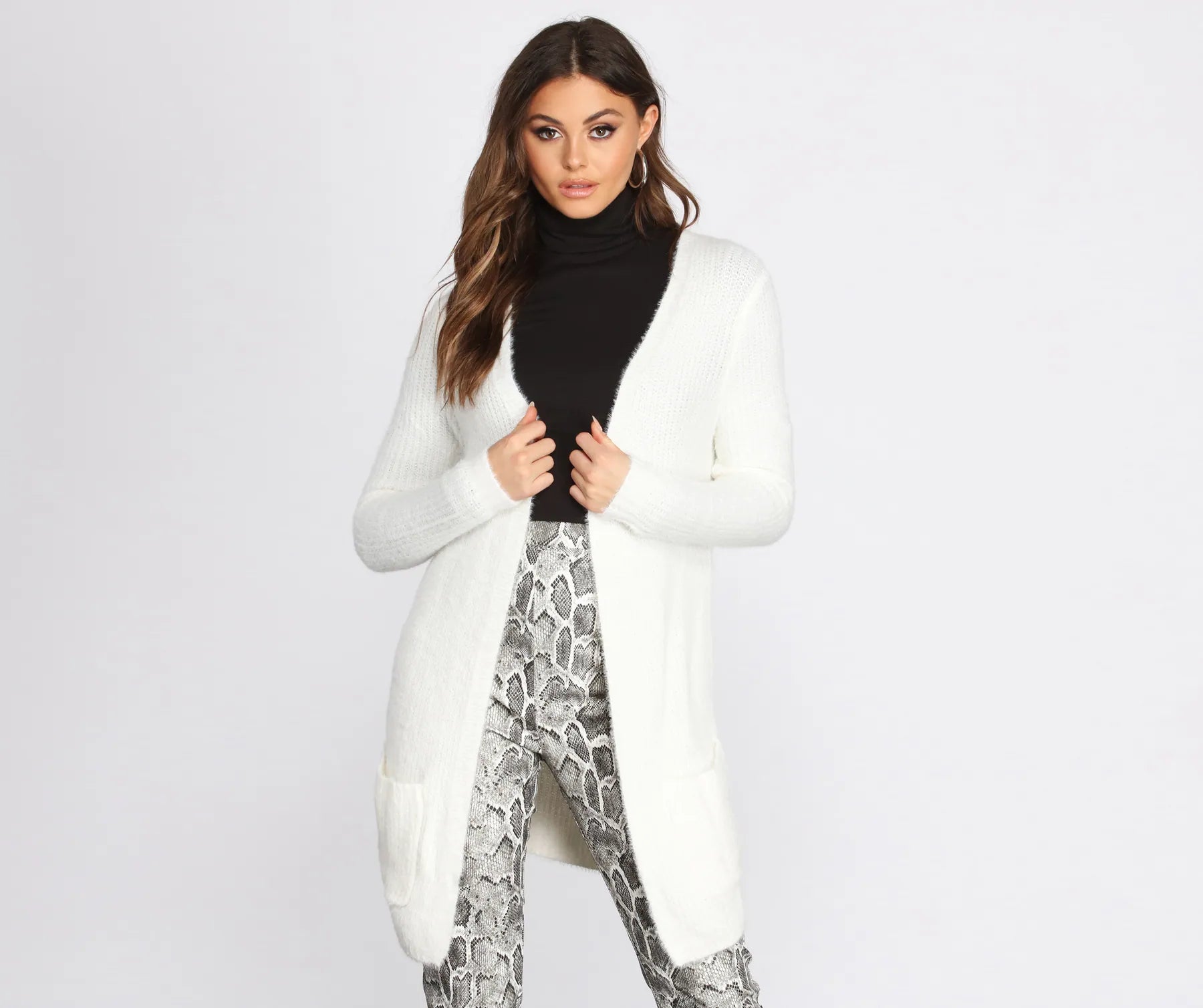 Throwing on a fuzzy cardi gives you that effortlessly trendy vibe without having to think too much, or plan out a whole look! It just brings you together!