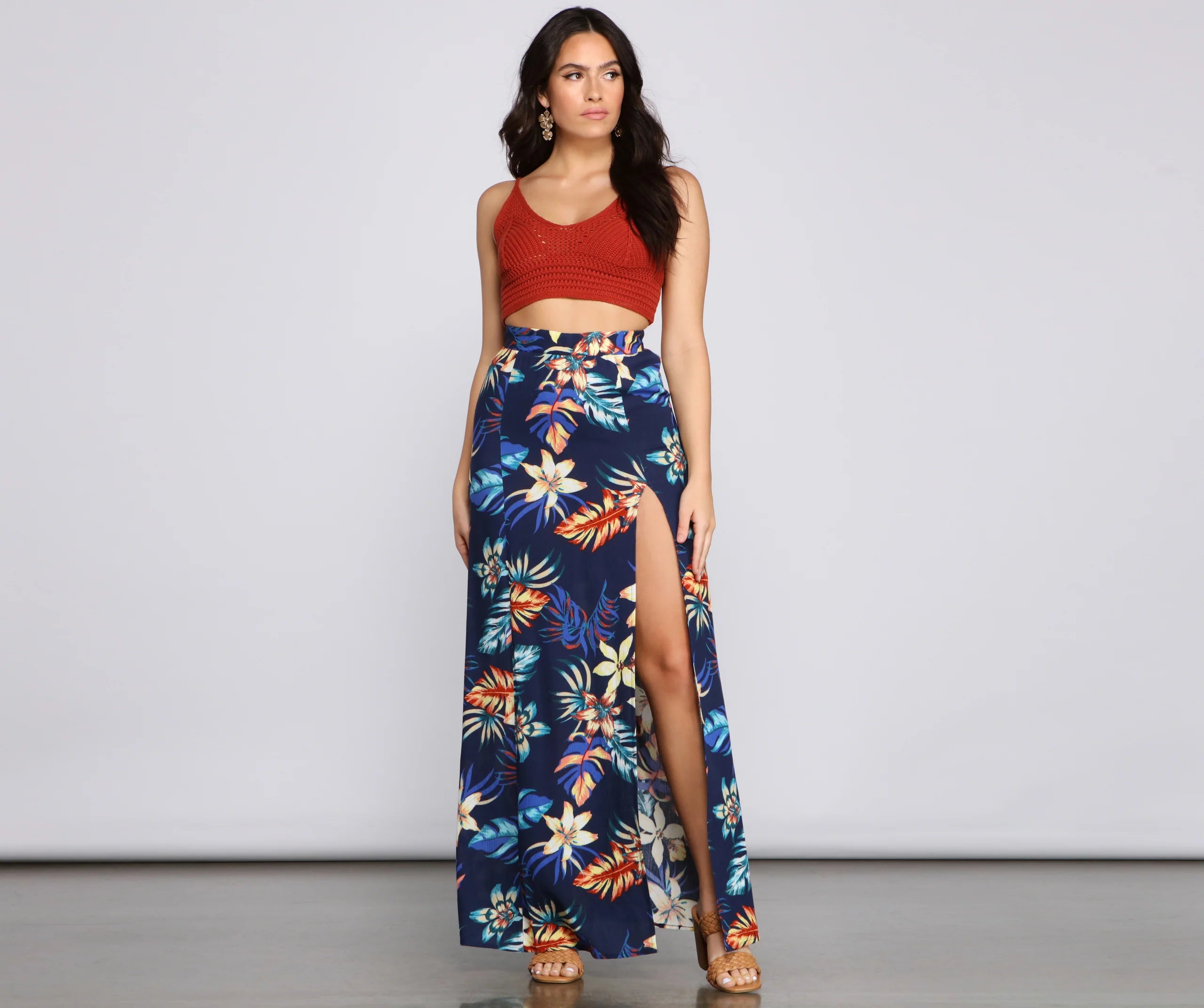 Channel a boho feel with a crop top that keeps your look effortlessly stylish! The top features a sleeveless V-neckline, spaghetti straps, a crochet knit bodice, and a cropped hem. Complete the look with an adhesive bra and maxi skirt.