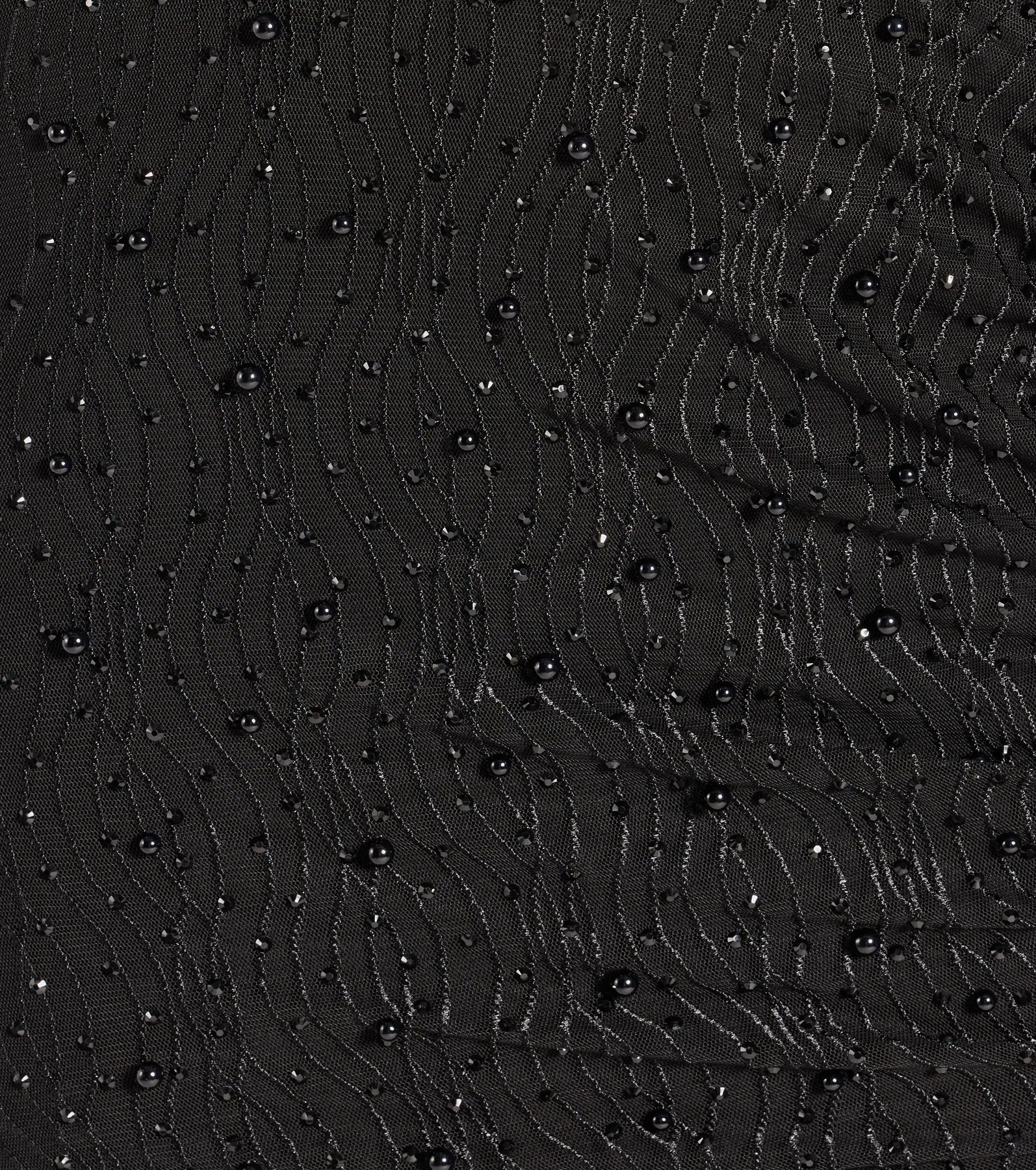 A sleeveless mini dress features a pretty lace-up back, a flirty front slit, and a bodycon fit on faux pearl and rhinestone embellished mesh fabric. Perfect for a girl's night out.