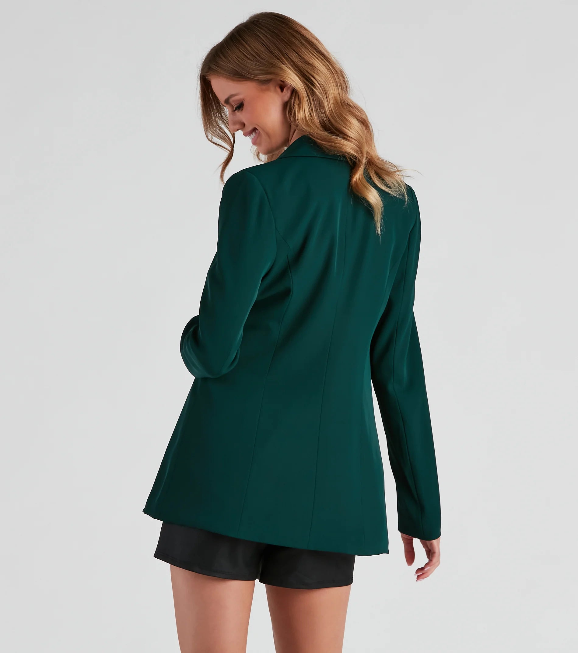 Set the trend in and out of the office in this sleek woven blazer featuring long sleeves, a lapel collar neckline, front button closure, and a relaxed silhouette. Complete the look in strappy heels.