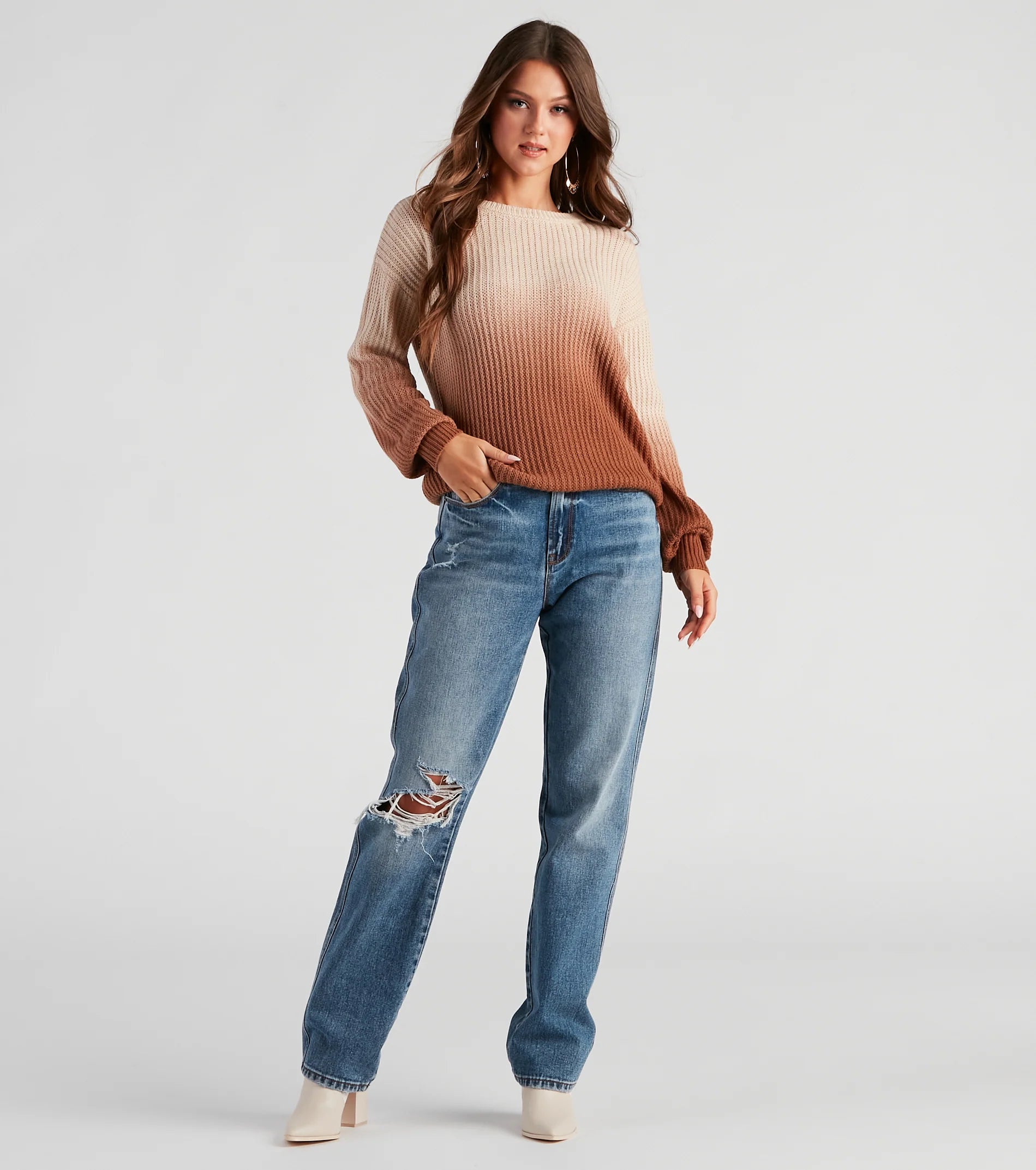 Color yourself in this pretty ombre rib knit sweater featuring long sleeves, ribbed cuffs and crew neck, and an oversized silhouette. Complete the look in straight-leg jeans for a casual coffee date!