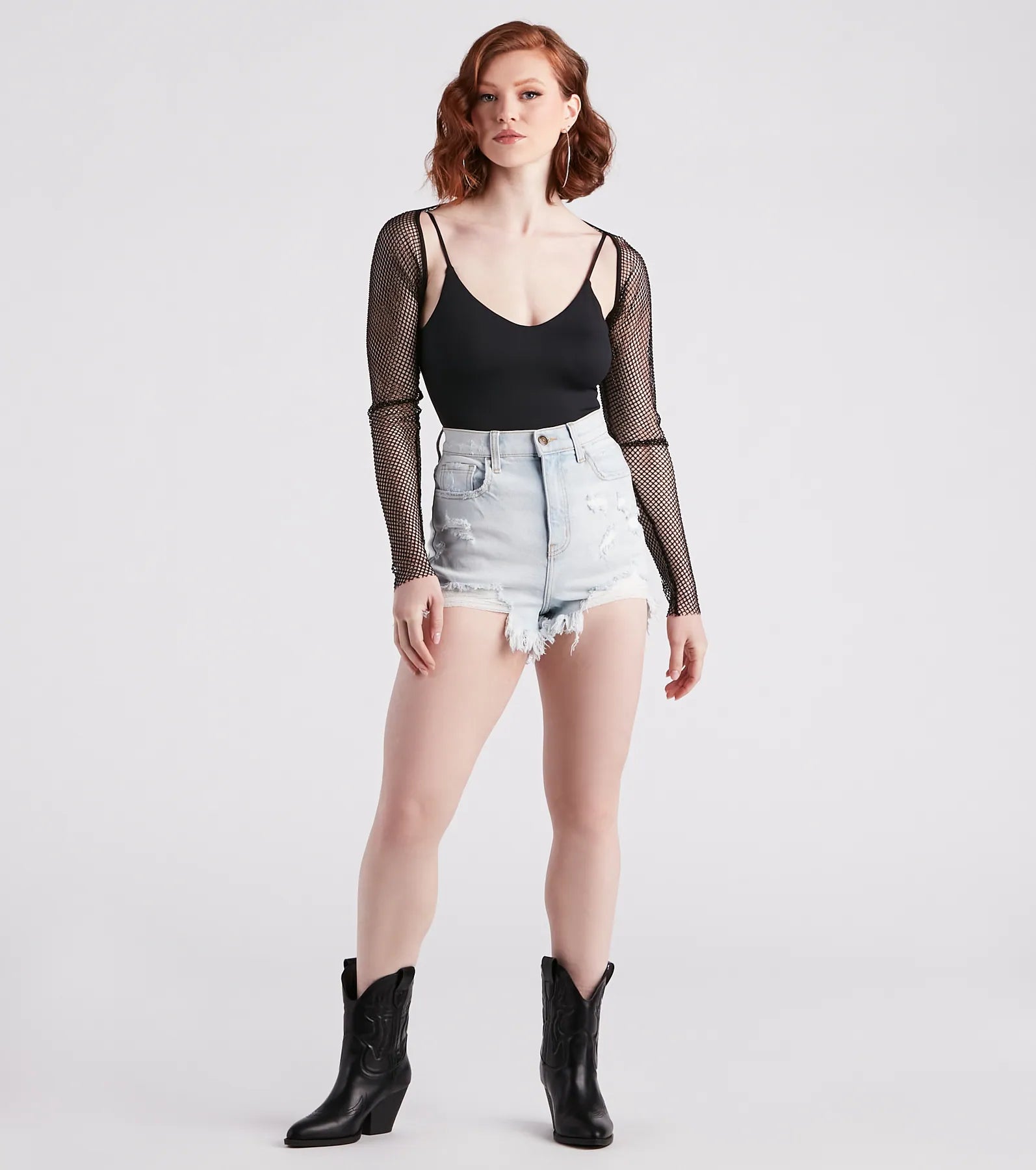 Radiate glam vibes in this trendy embellished bolero! It features long fitted sleeves, an open front, a fitted, ultra-cropped hem, and all-over sparkly rhinestones on the sheer open mesh fabric. Style over a fit and flare skater dress with platform heels for your next fancy party.