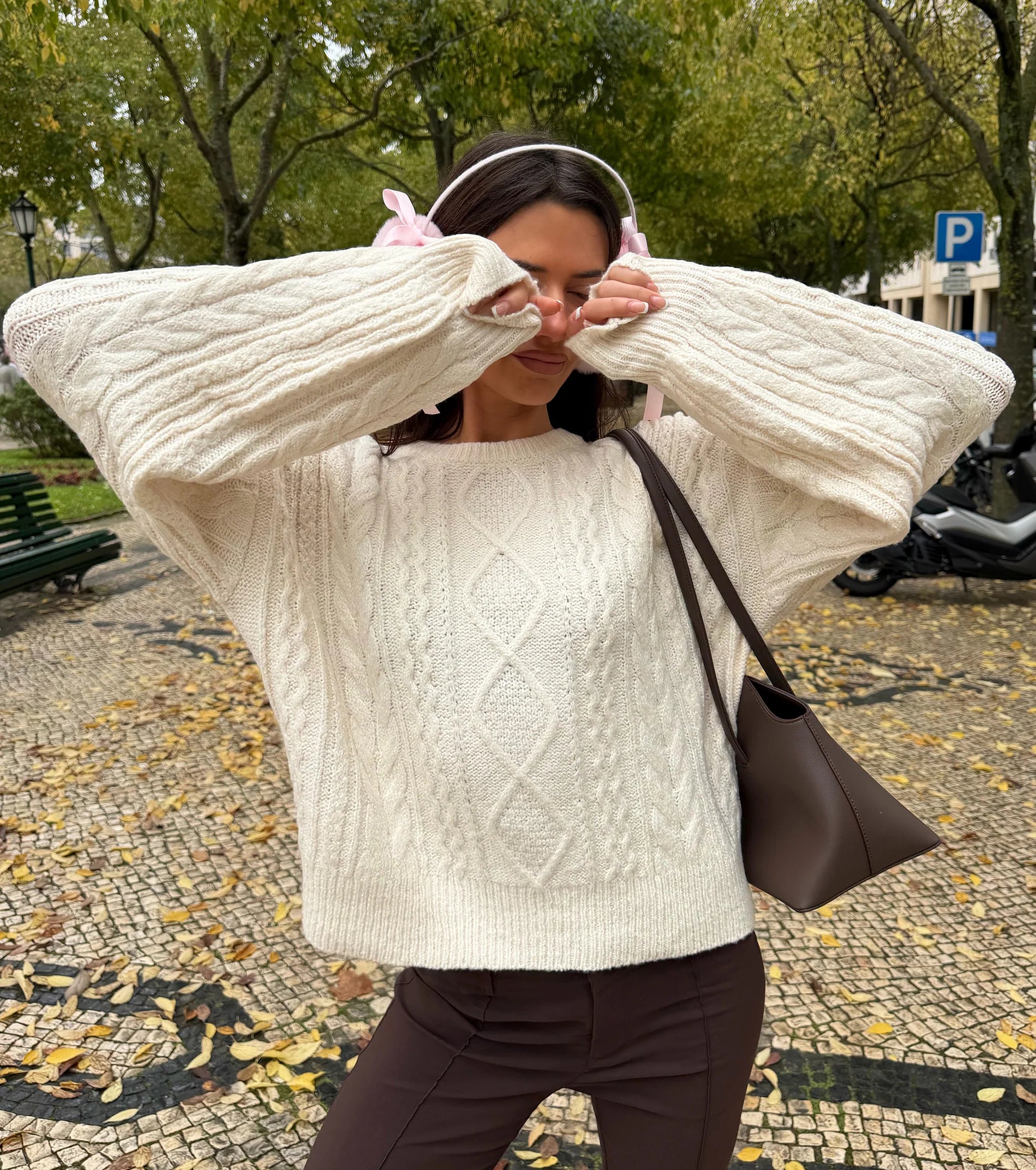 Peak cozy vibes—this cable knit sweater is made for crisp air, seasonal lattes, and wearing on repeat. The balloon sleeves and slouchy fit keep it effortless and cute with your favorite bottoms and boots!
