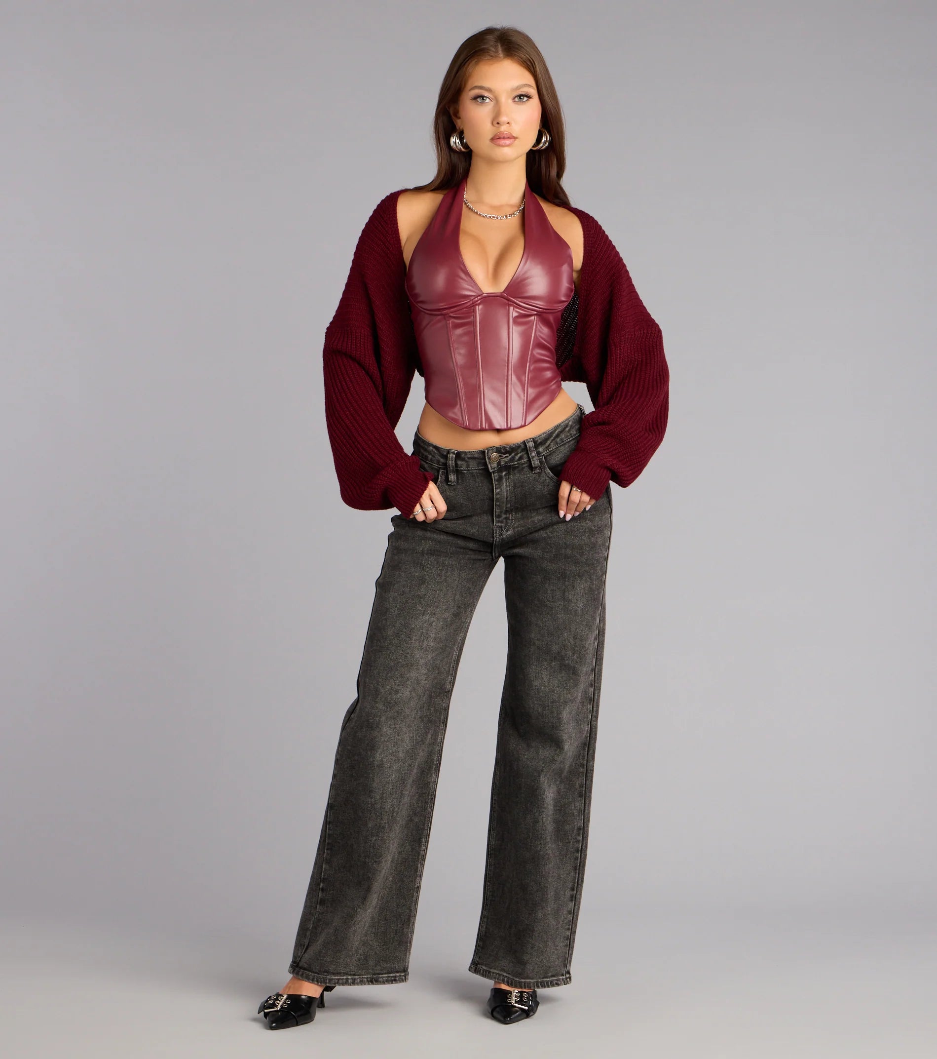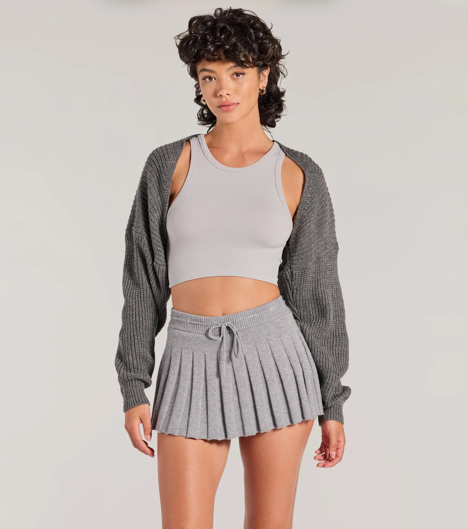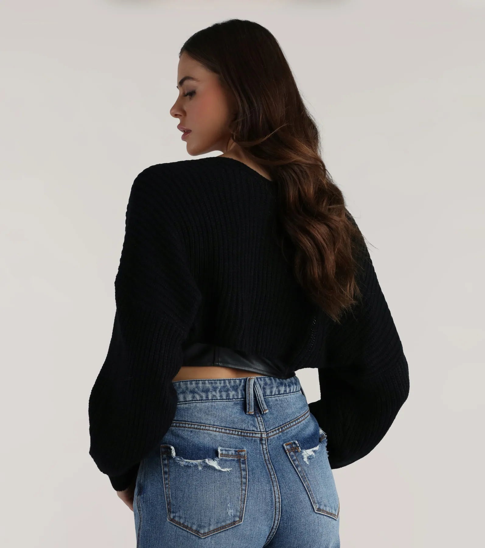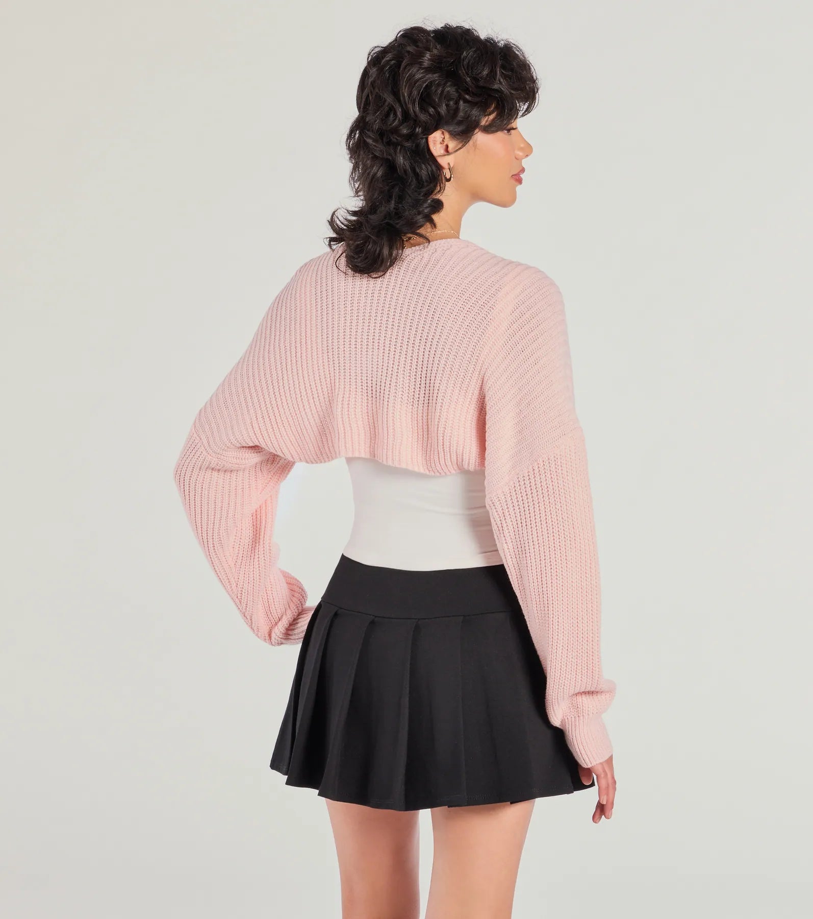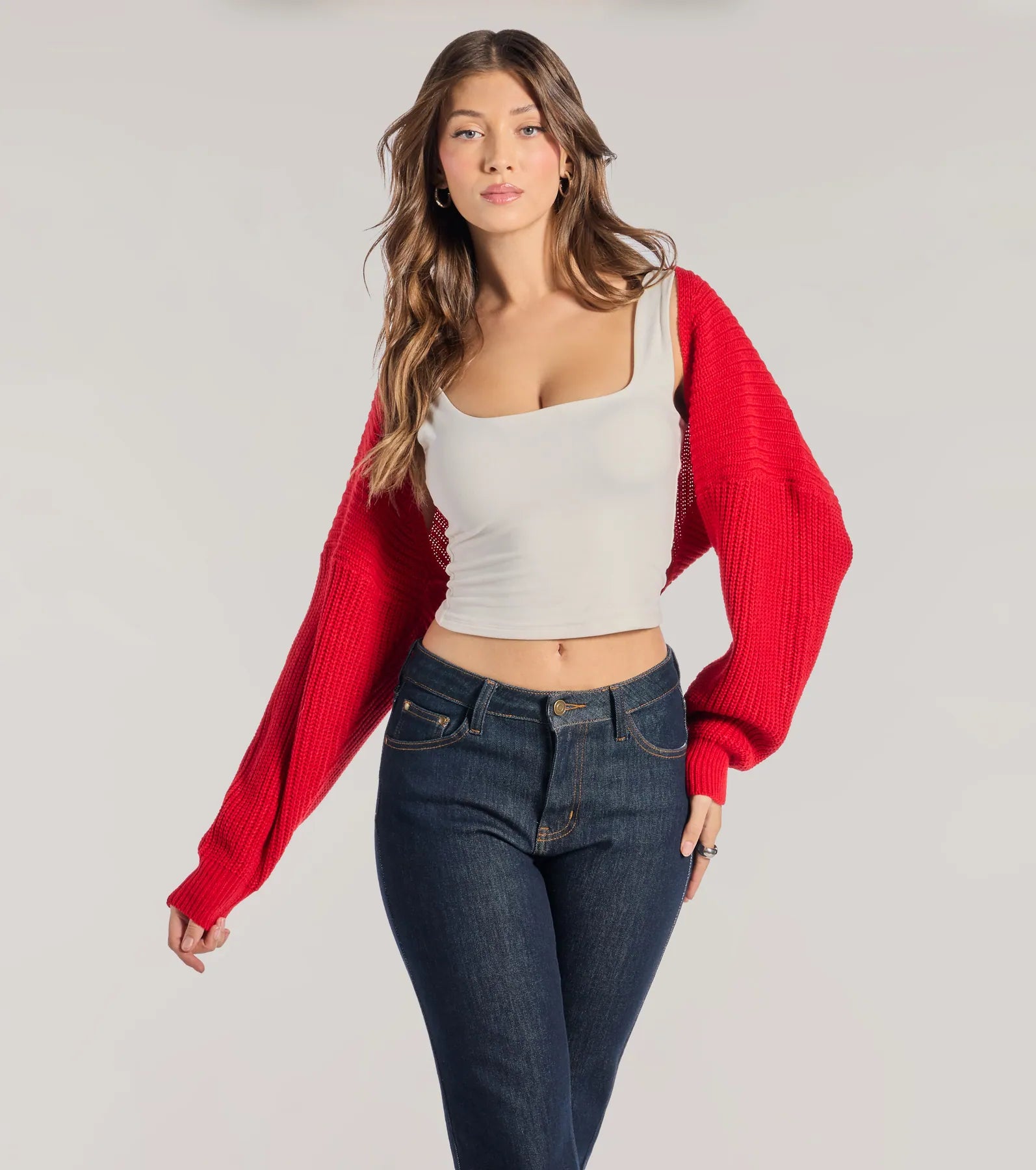 Layer on this sweater bolero for a sweet look and cozy feel! The sweater features slouchy long sleeves with ribbed cuffs, an open front design, an oversized silhouette, and an ultra-cropped hem on soft and stretchy knit fabric. Complete the look with strappy heels for a day out with bae!