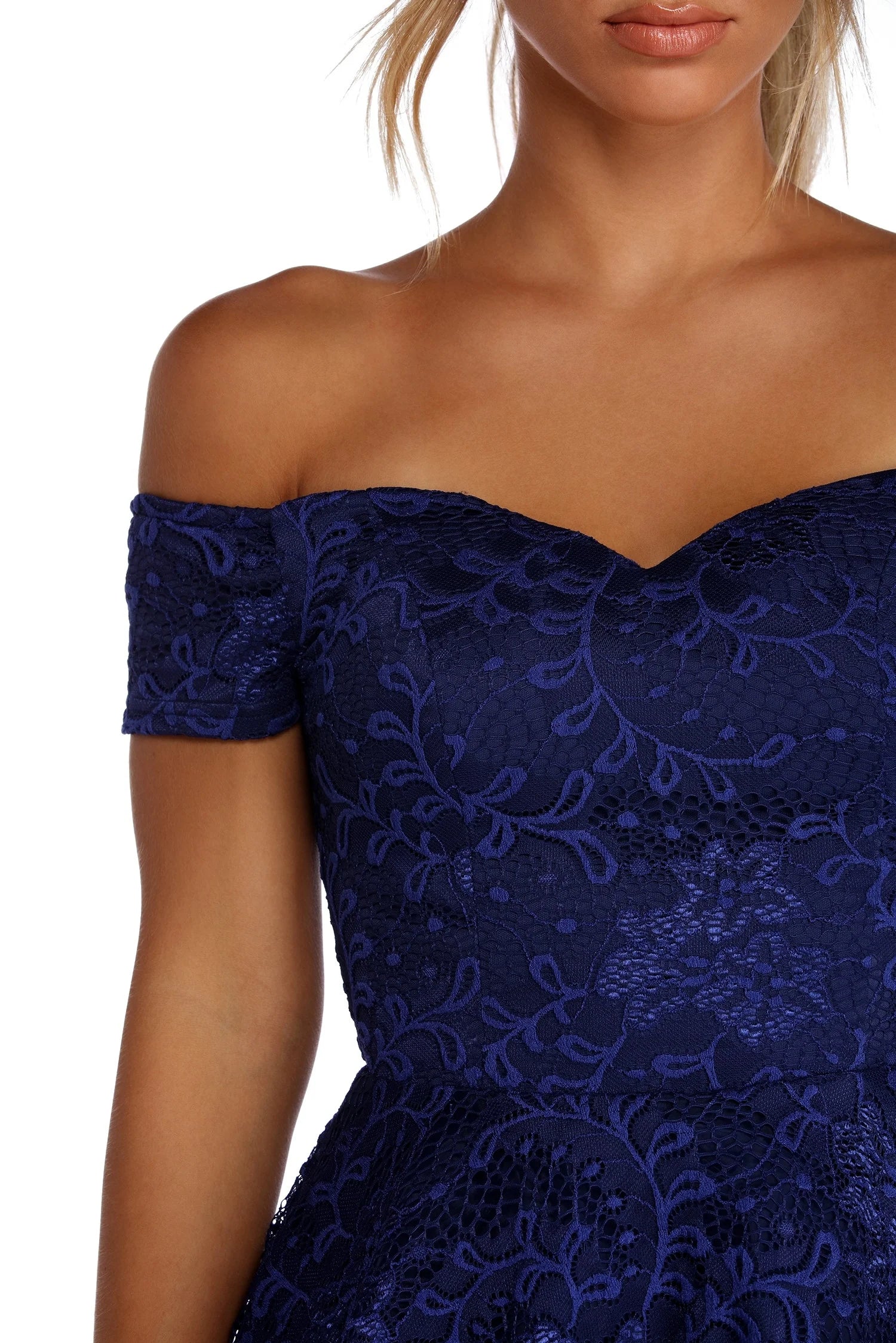 Model is 5'8" with a 32" bust, 23" waist and 36" hips. She is wearing a size small.