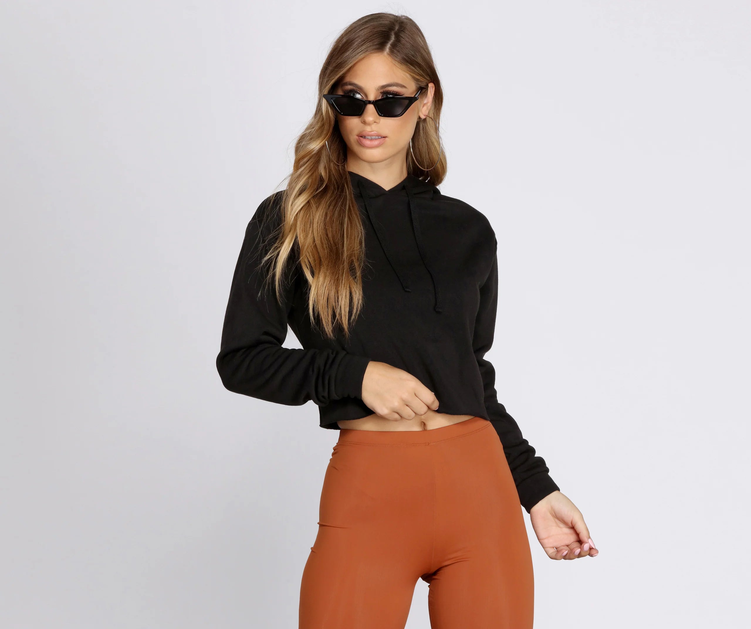 Make some moves this weekend in a totally not-so-basic outfit. This hoodie offers a cropped hemline that hits mid torso, long sleeves, and is composed of a knit material that offers a lightweight relaxed fit with moderate stretch. Pair with biker shorts and boots or sneakers!