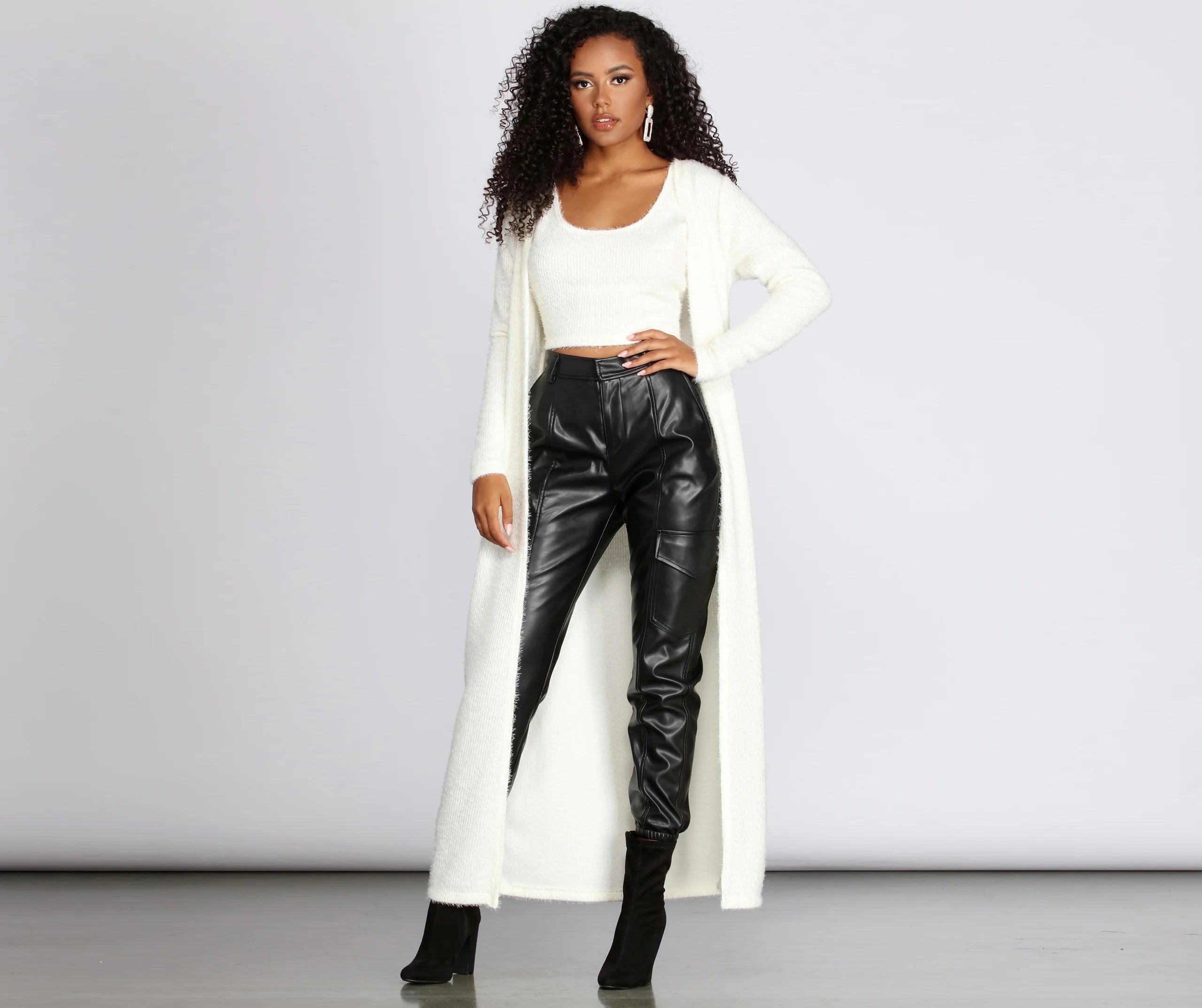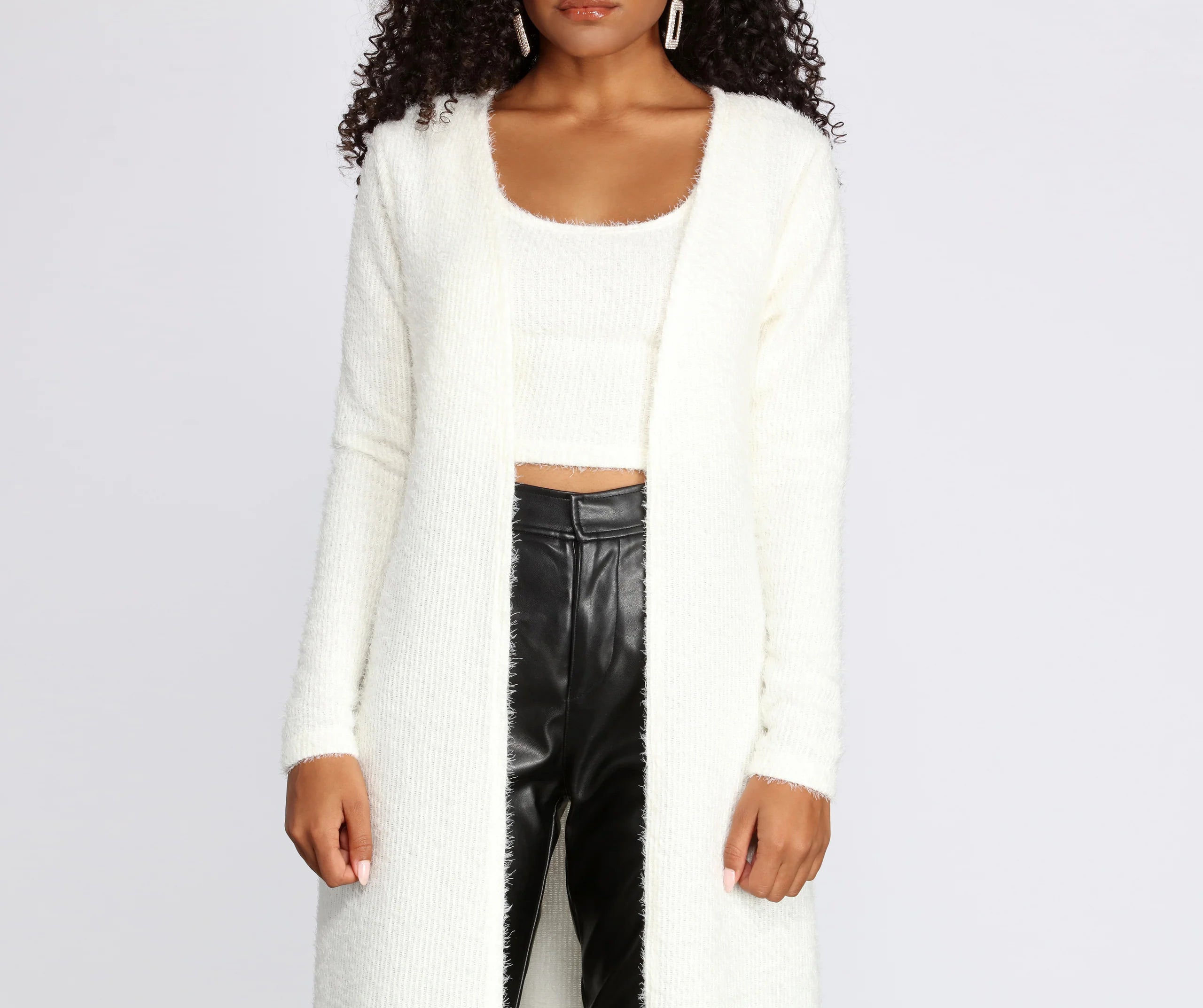 So obsessed with fuzzy right now, we can not get enough! Another thing we are obsessed with is sets, so don't forget to pick up the matching fuzzy crop top to complete your look!
