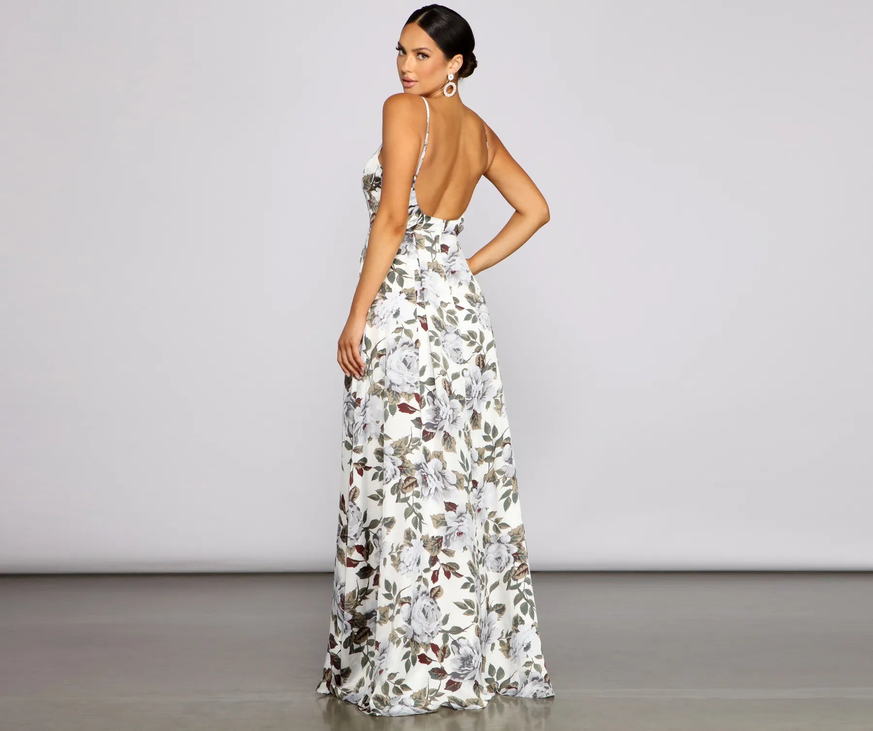 Make a head-turning entrance with a breathtaking formal dress that draws all eyes on you. Tatiana features a sleeveless V-neckline, adjustable spaghetti straps, a floral print, hidden side pockets, a high side slit, and a flowy A-line silhouette. She is composed of a lined satin fabric that offers a form-hugging fit with minimal stretch. Complete look with rhinestone heels and a satin clutch.