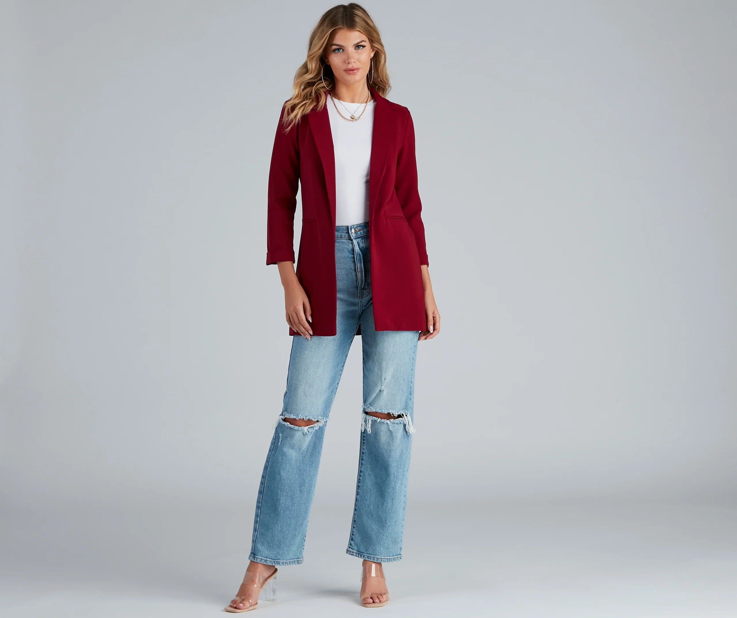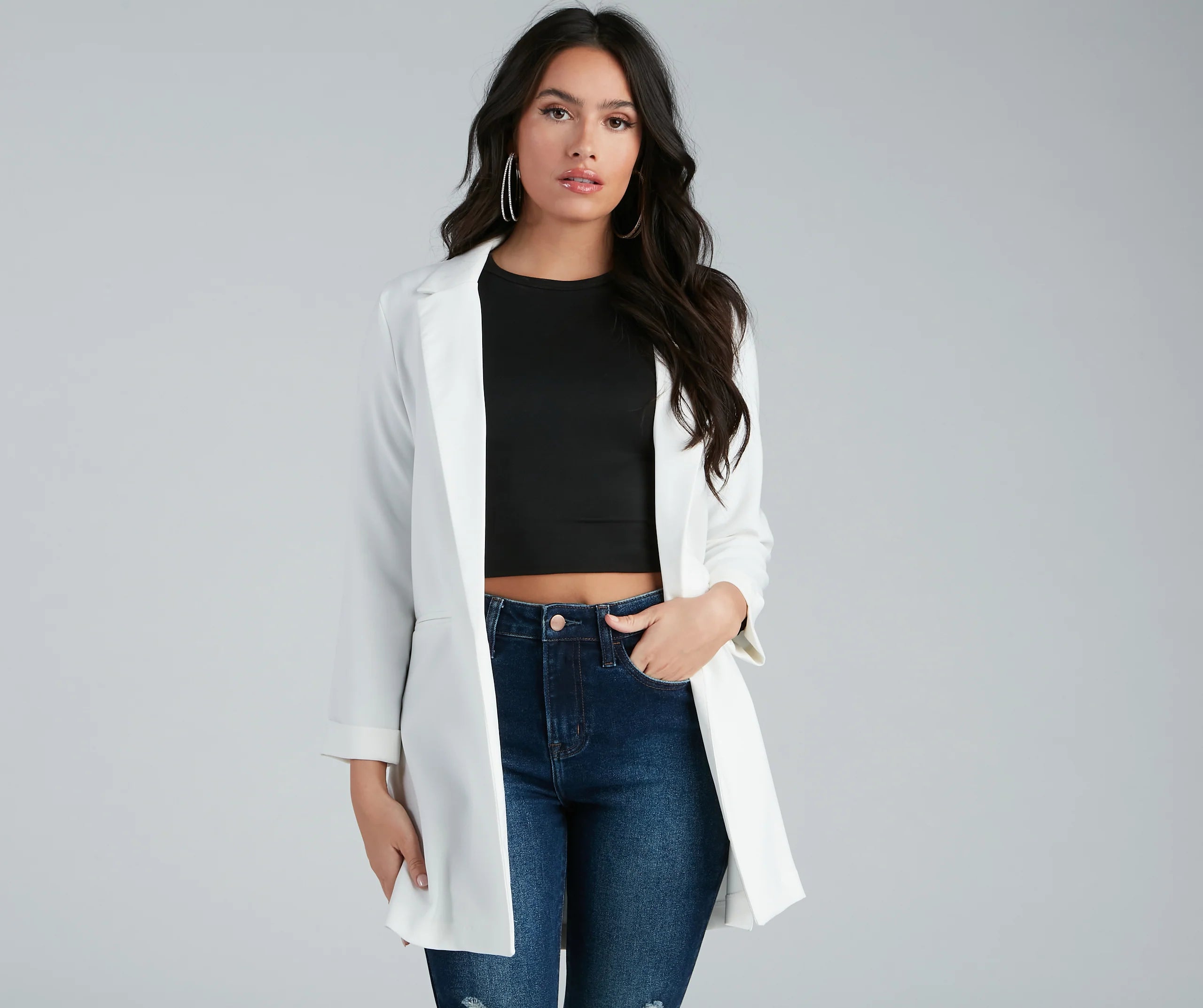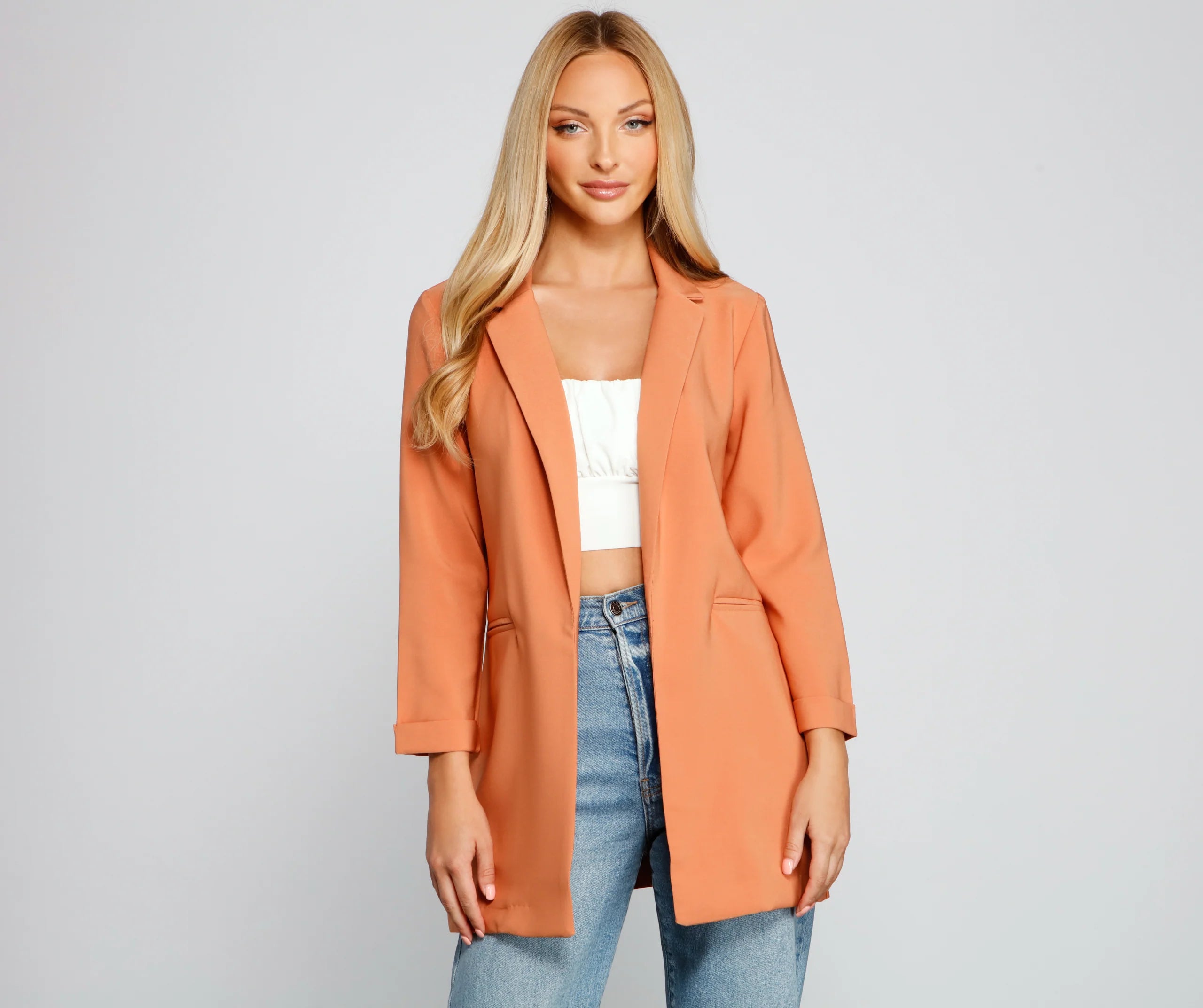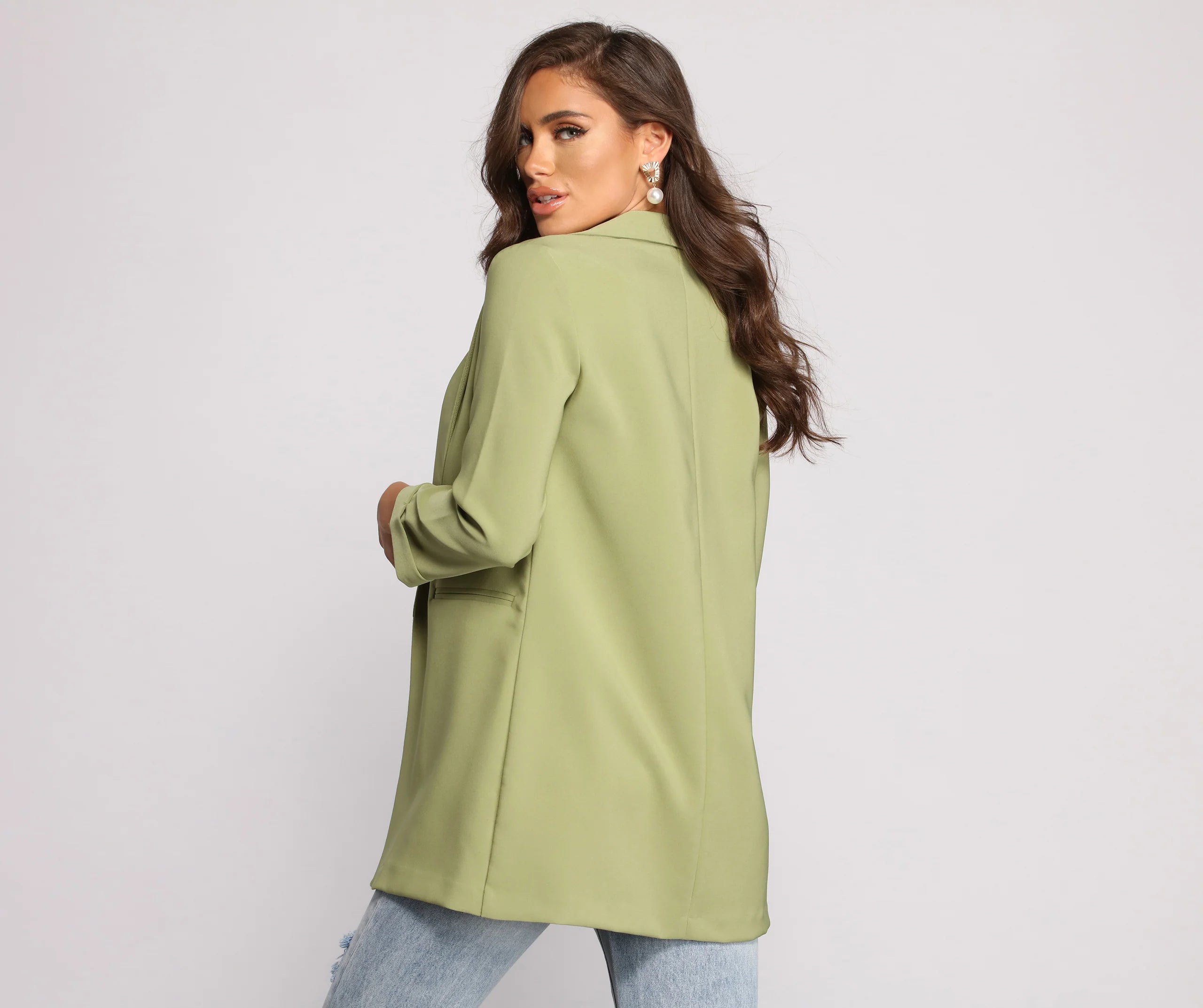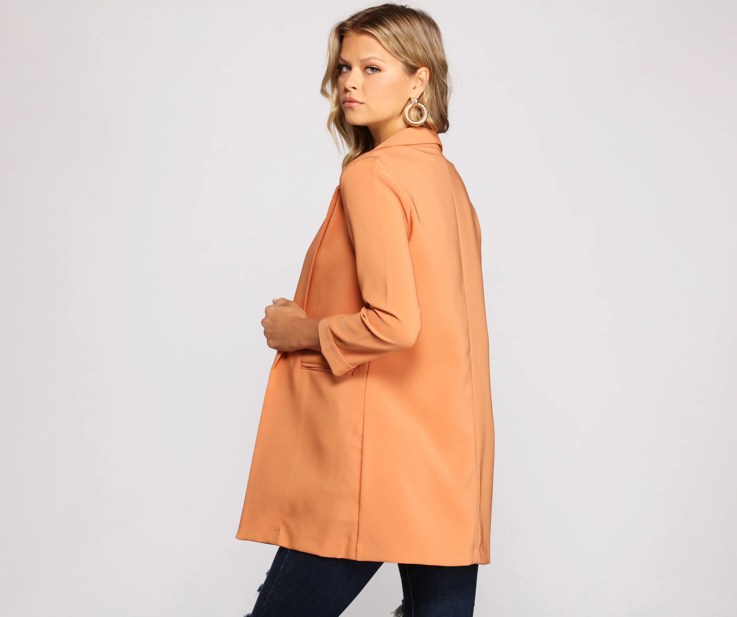 Dress up a casual look with a layer-ready boyfriend blazer! This must-have blazer will become a statement staple in your rotation of chic looks. Featuring a trendy oversized boyfriend fit, layer this blazer over a trendy mini skirt for an office-ready vibe.