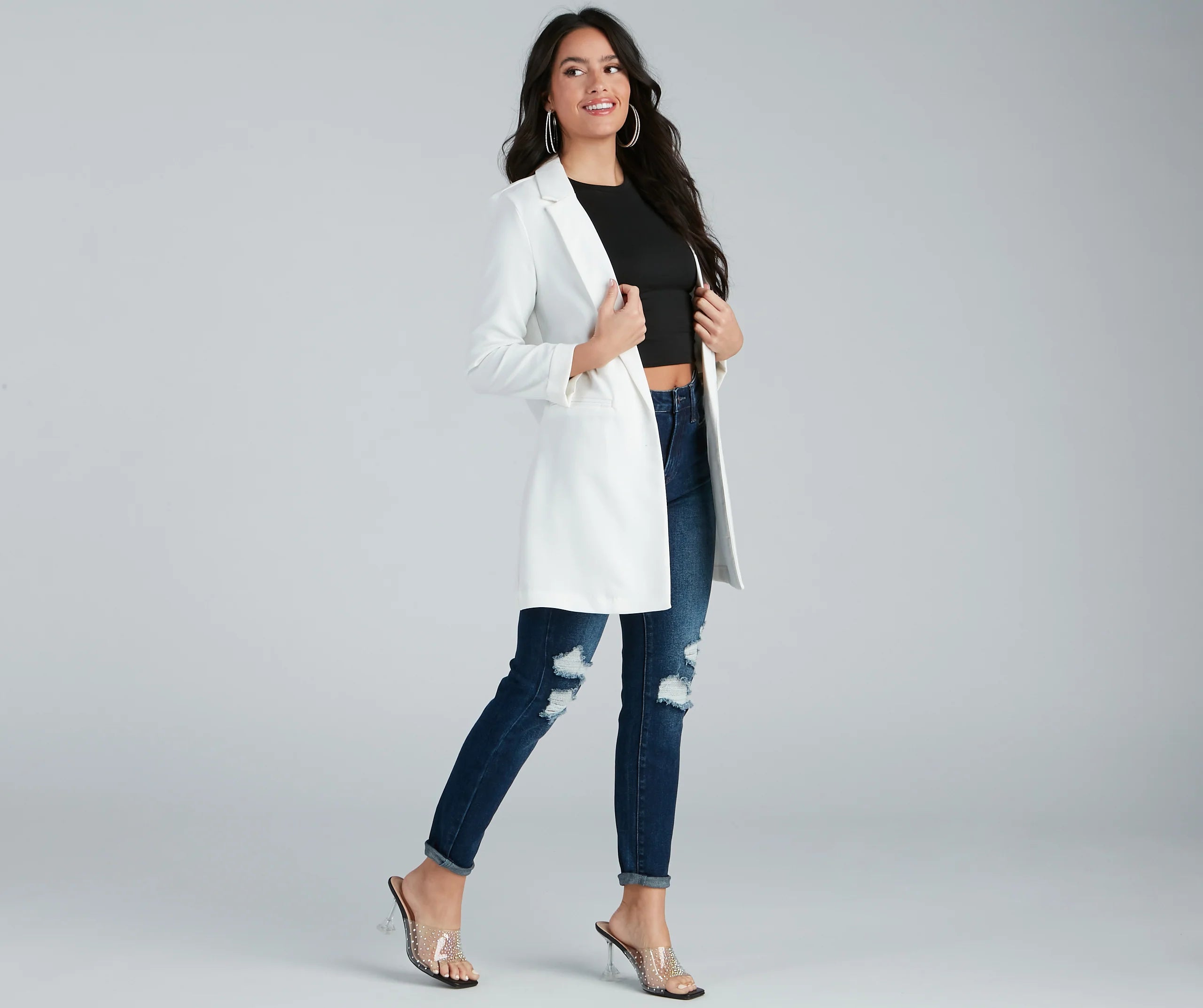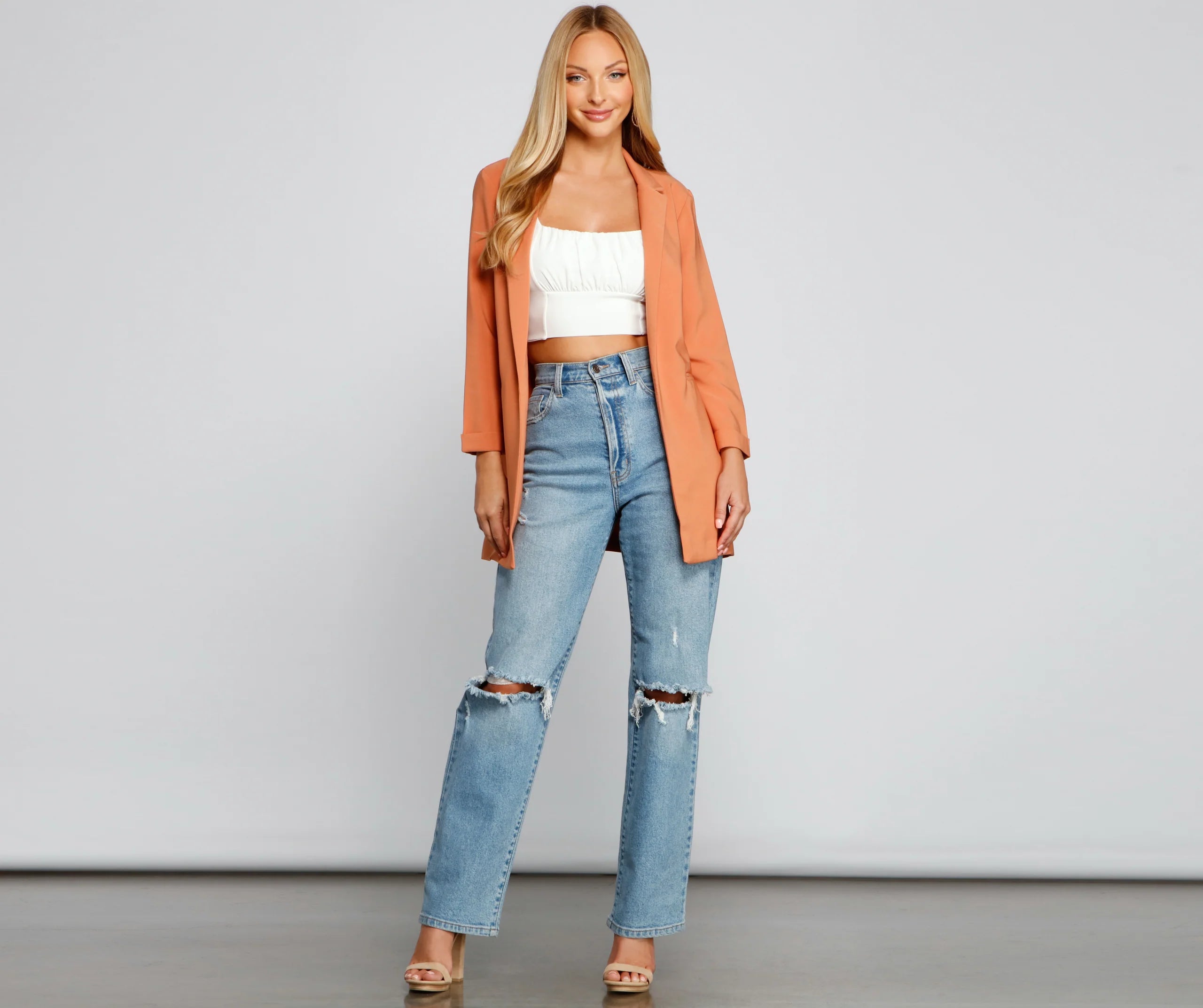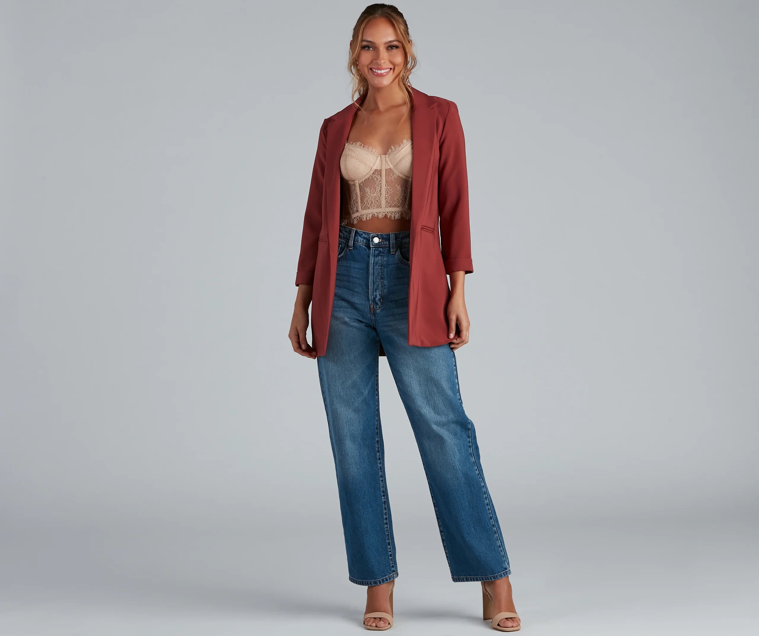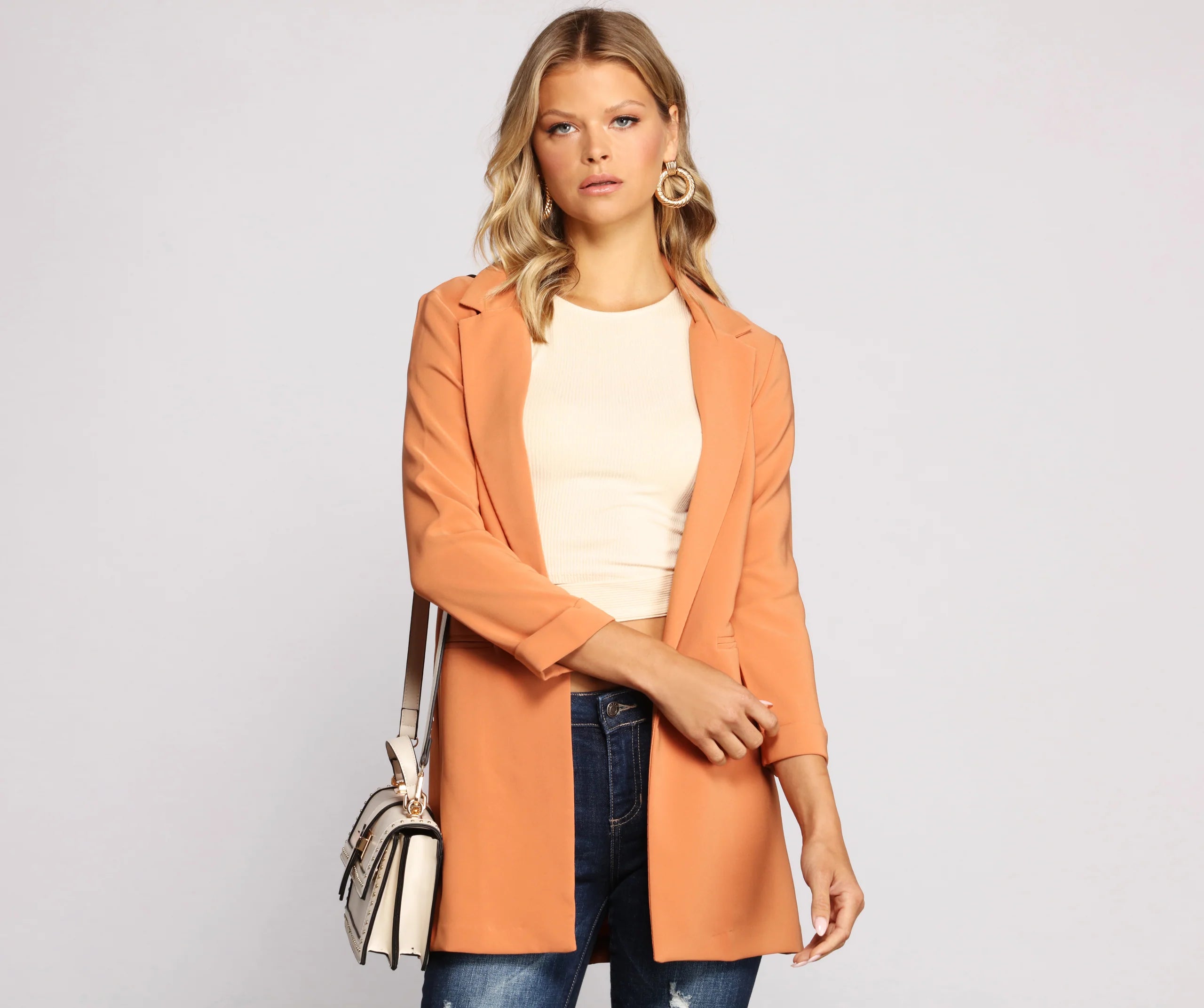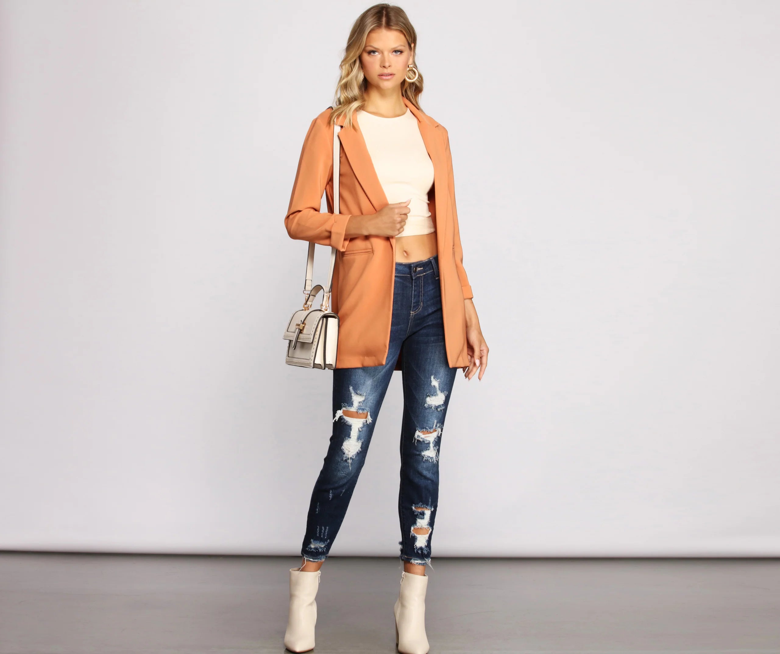 Dress up a casual look with a layer-ready boyfriend blazer! This must-have blazer will become a statement staple in your rotation of chic looks. Featuring a trendy oversized boyfriend fit, layer this blazer over a trendy mini skirt for an office-ready vibe.