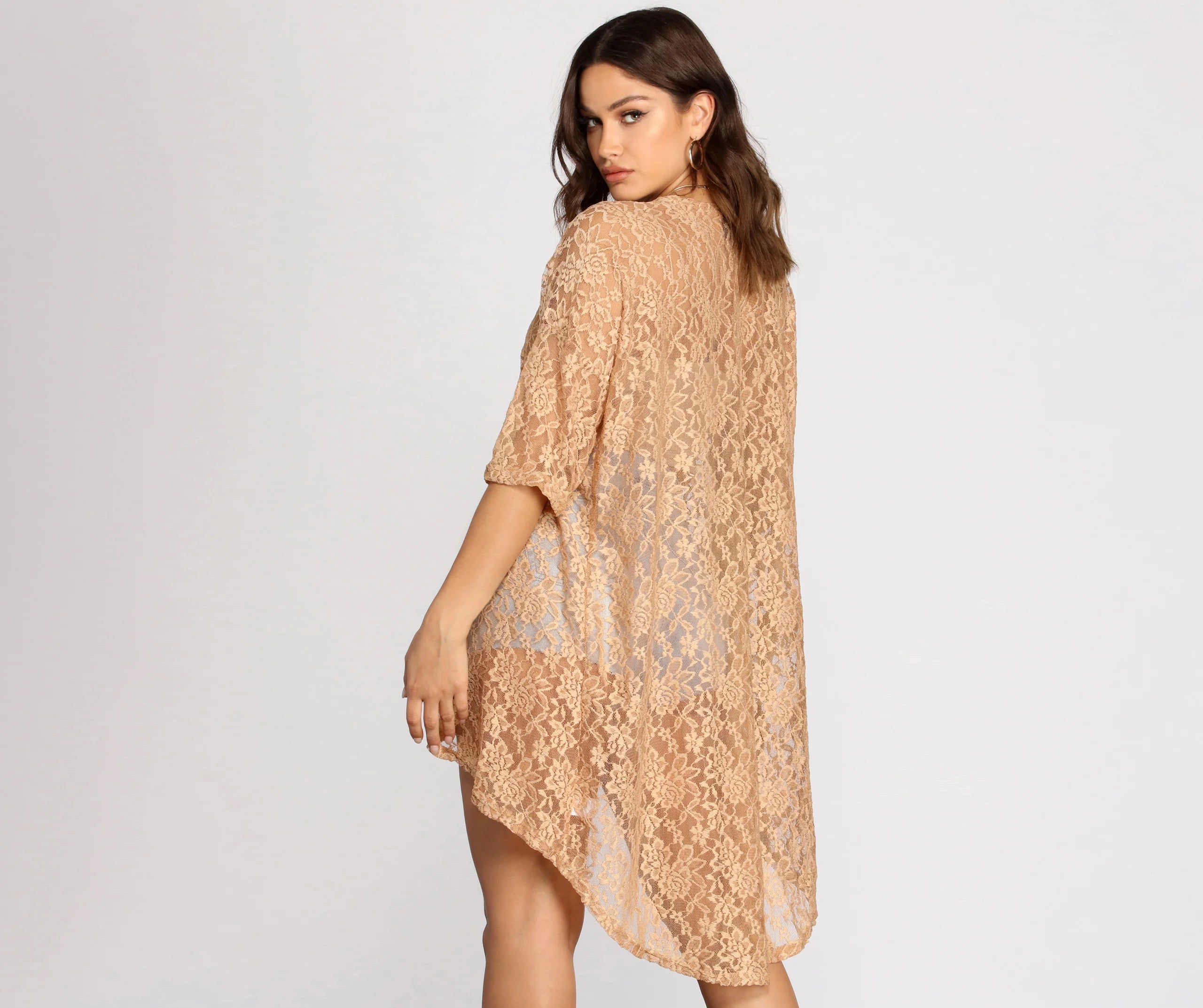 You're just a wanderlust beauty, always looking for a cute new 'fit! Layer on this perf lace kimono for that instant boho babe look!